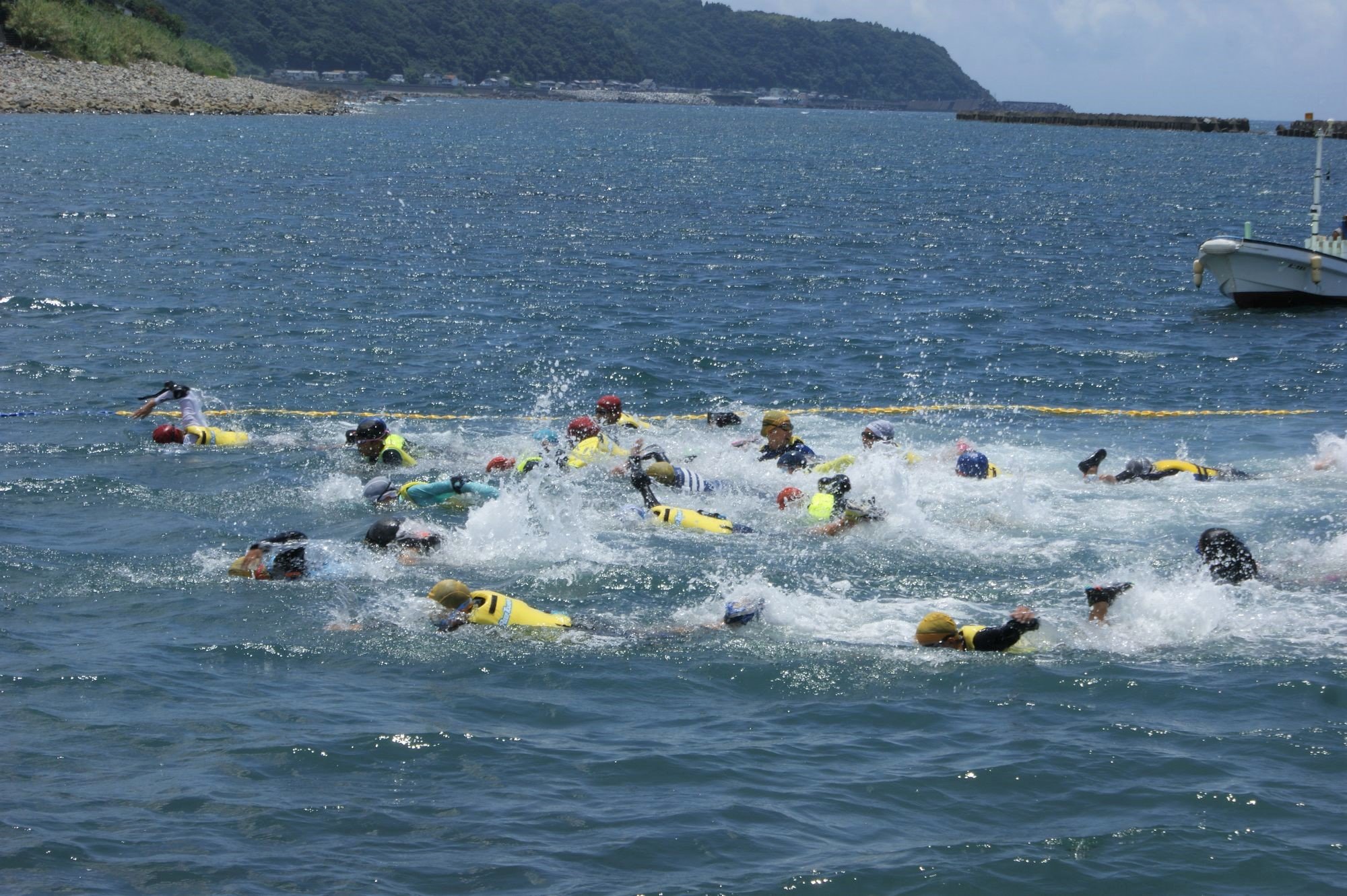 나반리쵸 고향 해안에 있어서 초등학생들에 의한 수임, 오토바이, 란의 3종목을 겨루는, 어른 뺨치는 트라이애슬론 대회입니다.