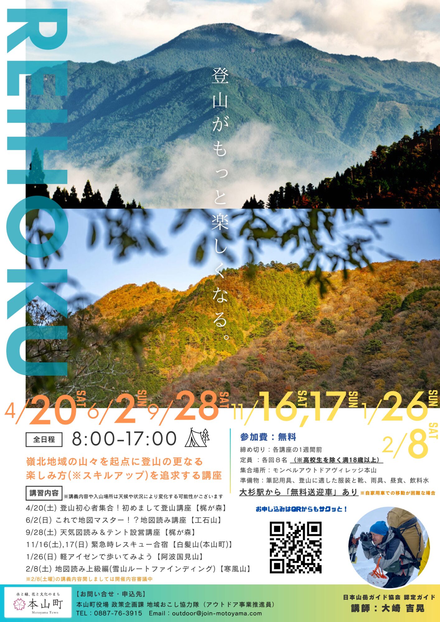 전 6회(7일정)의 풍부한 테마로 일본 산악 협회의 인정 가이드보다 등산의 즐기는 방법(스킬 업)을 배우는 이벤트입니다!