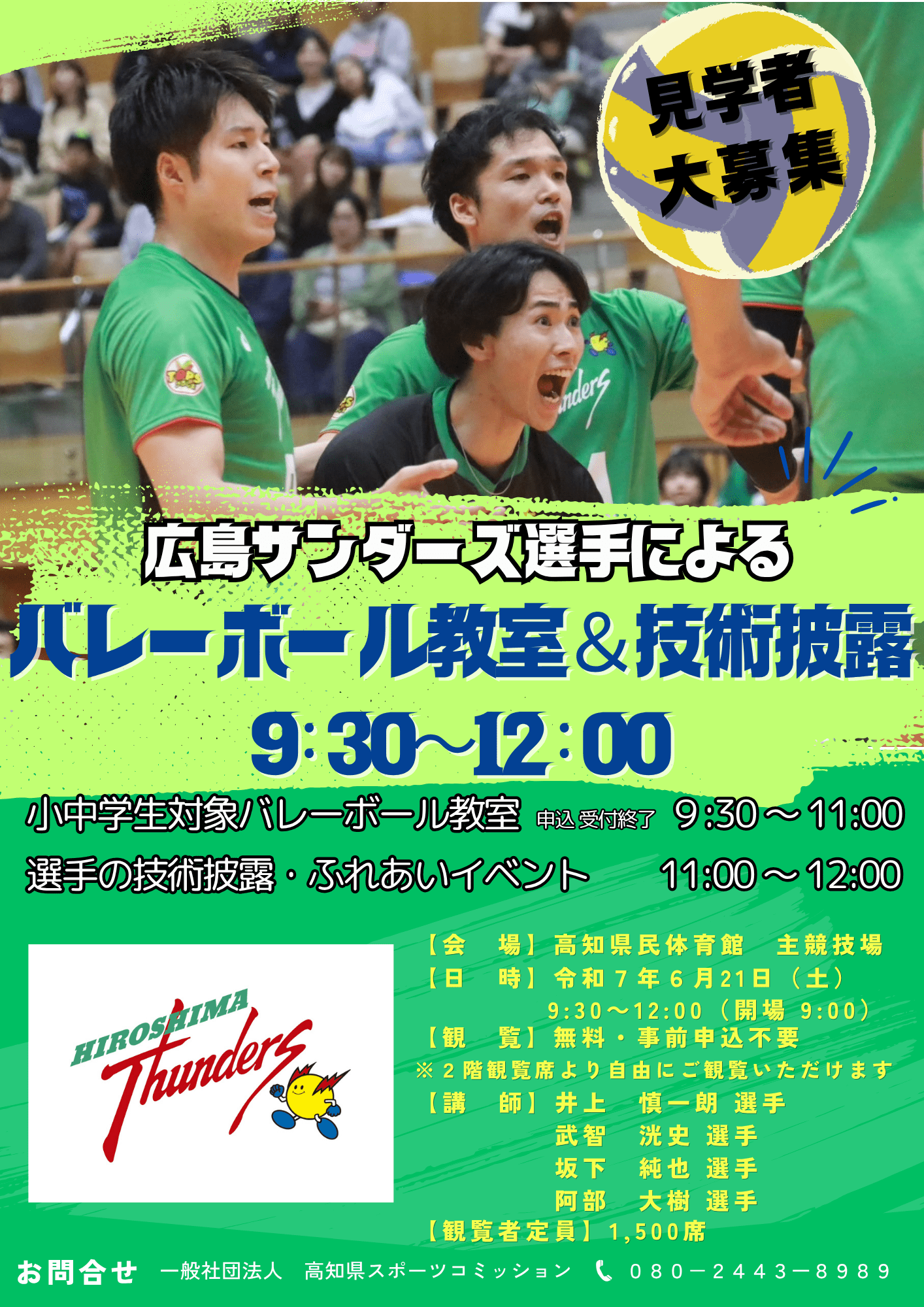 견학자 대모집! 】히로시마 샌더즈 선수에 의한 배구 교실&기술 피로