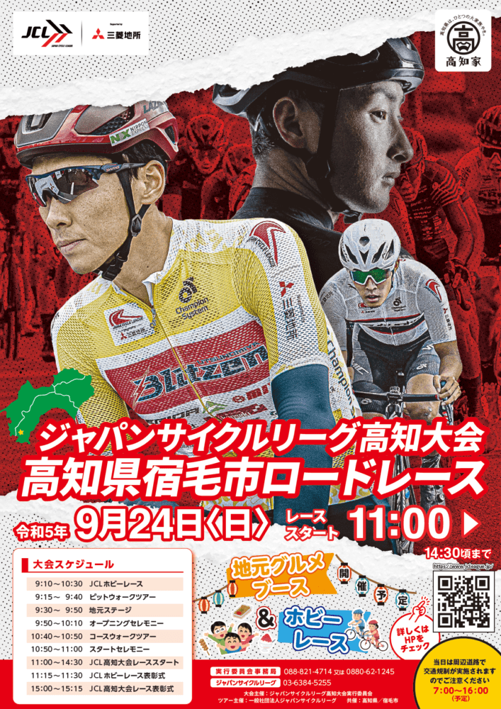 9월 24일(일)에 스쿠모시에서 개최되는 자전거 경기의 프로 로드 레이스 투어 「재팬 사이클 리그」의 고치 대회를 「스포한다!고치」의 YouTube 채널에서 라이브 전달을 실시합니다!