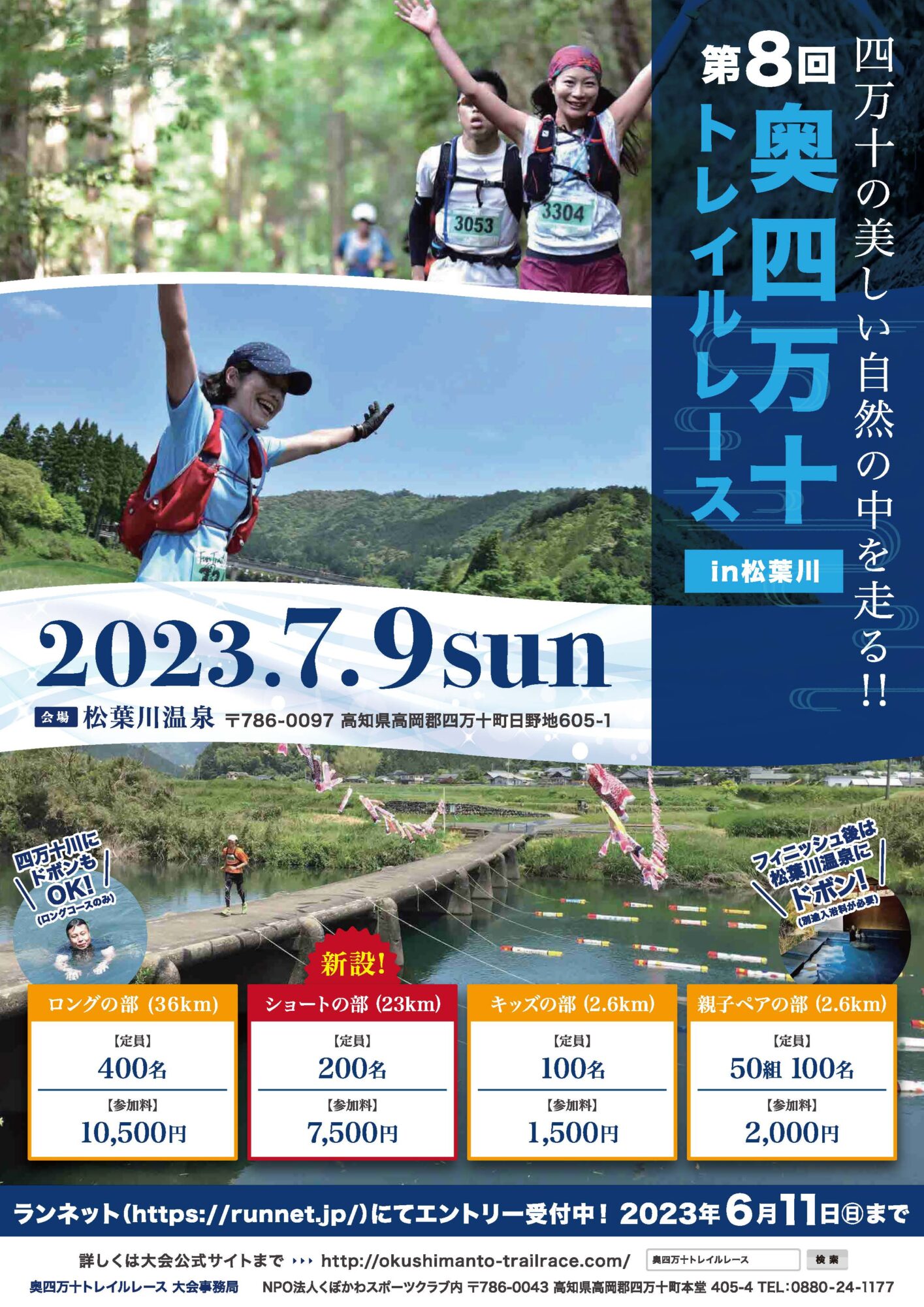 오쿠시만십(시만토초 마쓰바가와 지구)의 삼림을 주파하는 트레일러닝 이벤트.이번 대회부터 쇼트 부를 신설.