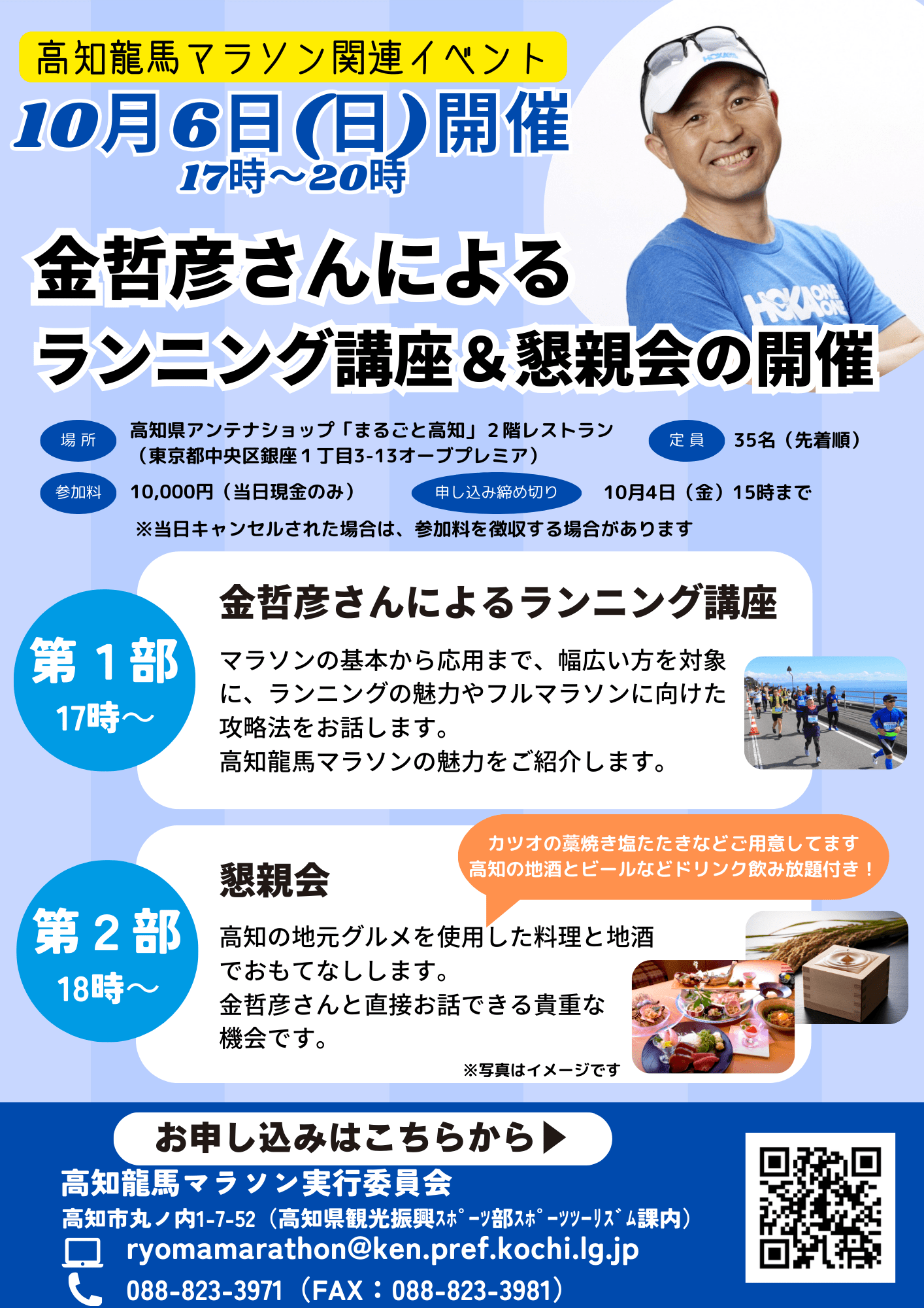 고치 료마 마라톤 2025 대회 어드바이저의 김철언씨가, 도쿄에서 러닝 강좌&간친회가 개최됩니다.