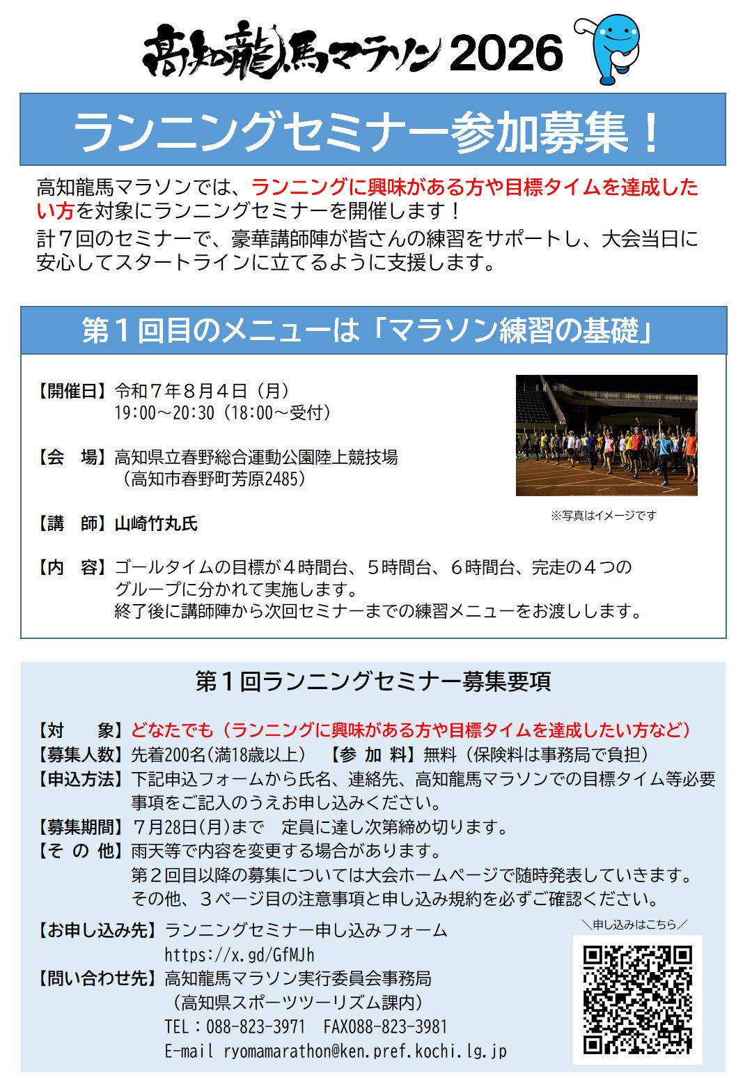 고치 료마 마라톤 2026 제1회 러닝 세미나 참가자 모집!