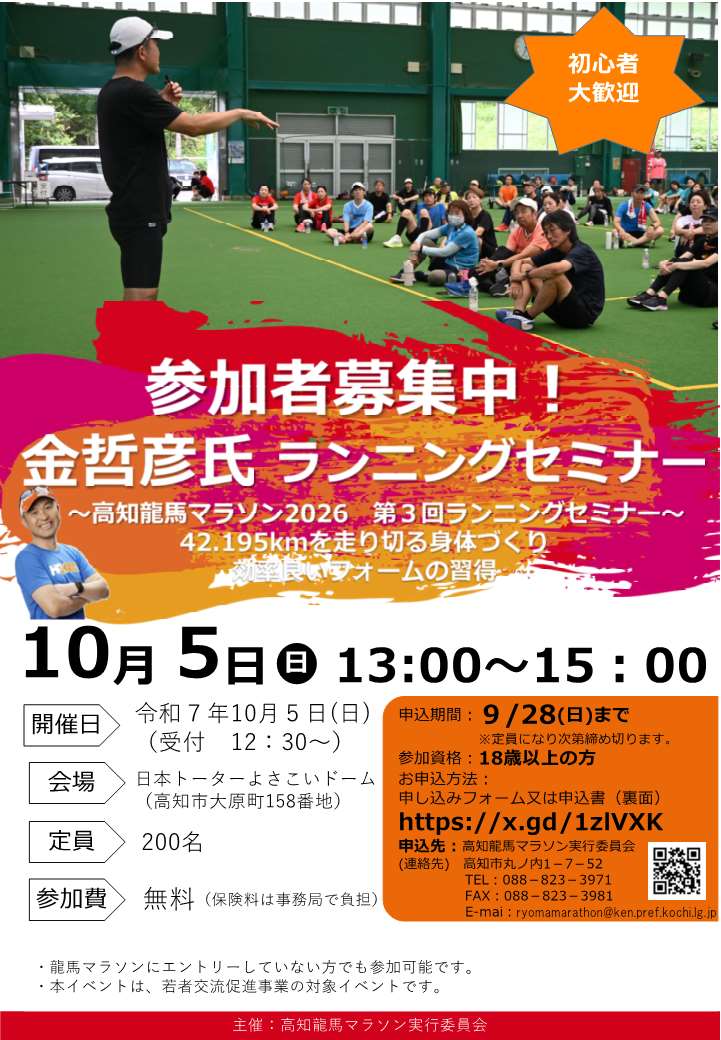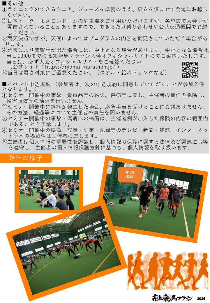 고치 료마 마라톤 2026 제3회 러닝 세미나 참가자 모집!