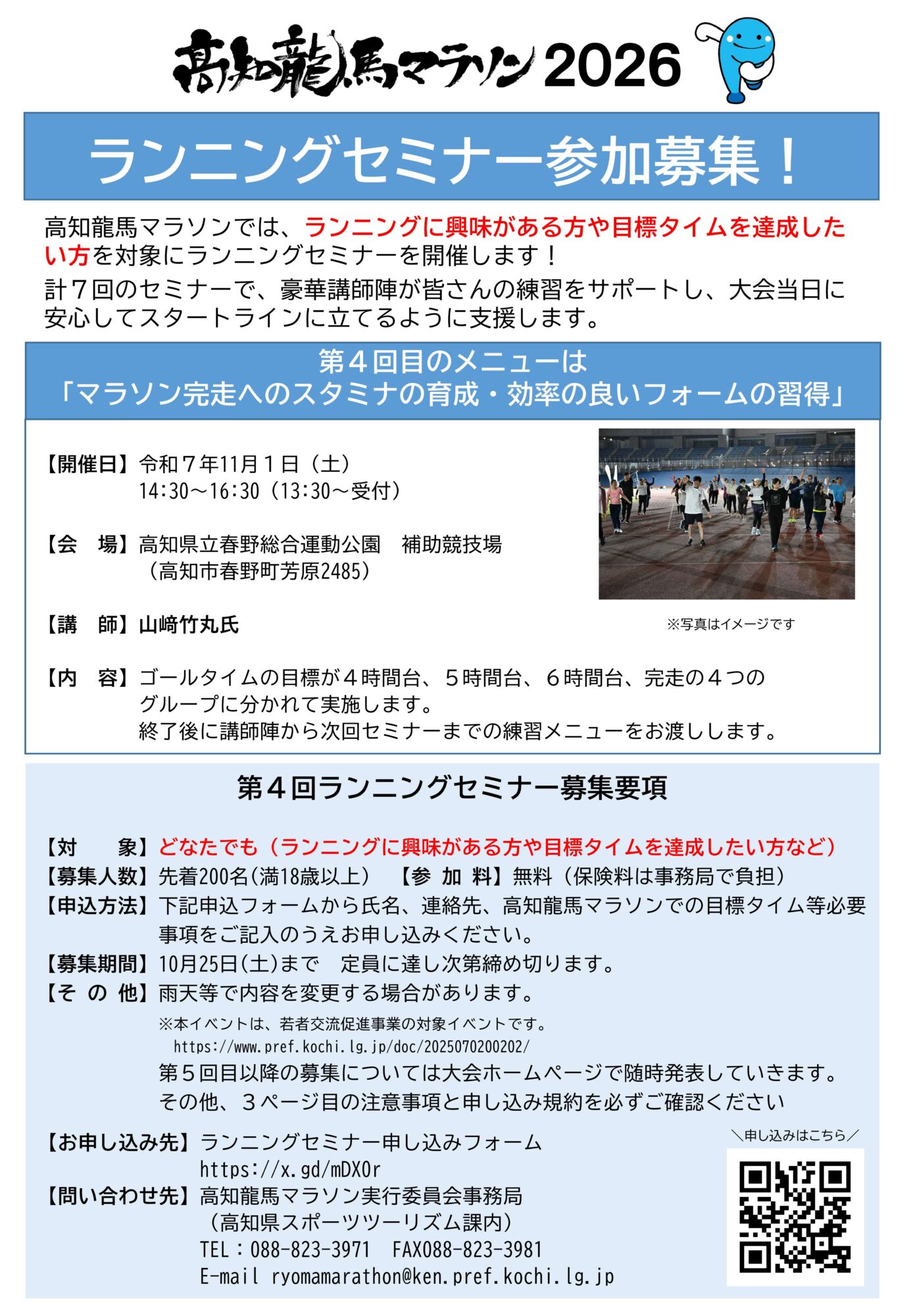 고치 료마 마라톤 2026 제4회 러닝 세미나 참가자 모집!