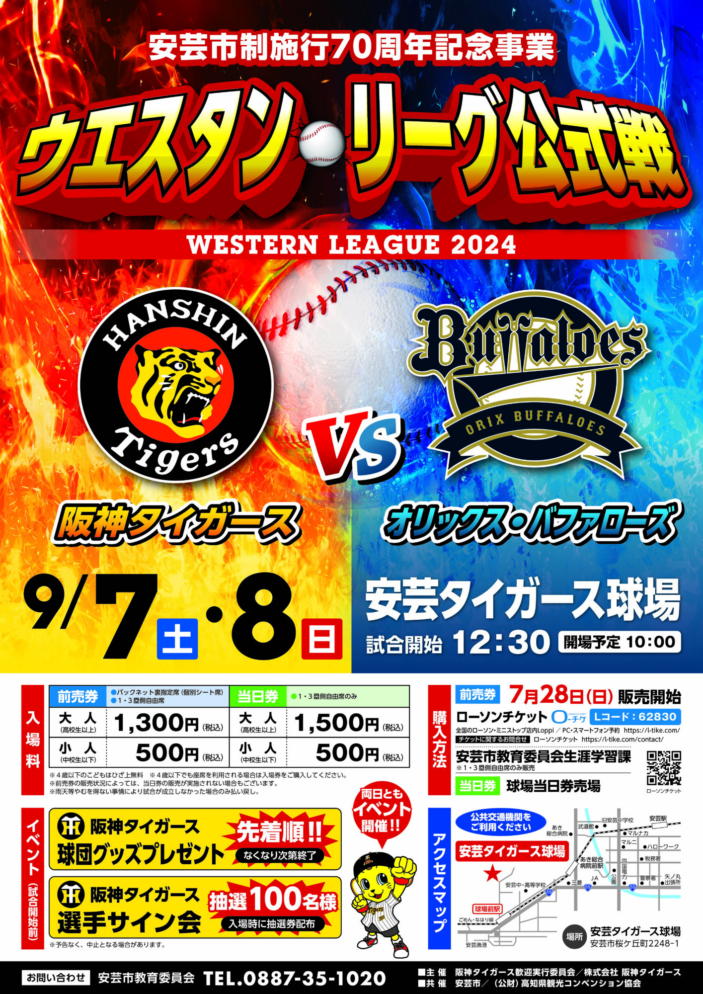 아키시제 70주년 기념 사업으로서 프로야구 웨스턴 리그 공식전 “한신 타이거스 v 오릭스·버펄로스”전을 개최합니다.