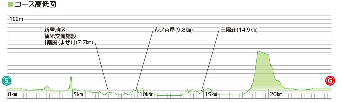 다카오카 상가(드래곤 광장)를 스타트해, 자연 가득한 제방을 따라 니요도가와 하구까지 단번에 내려갑니다하구 앞에는 태평양이 펼쳐집니다.