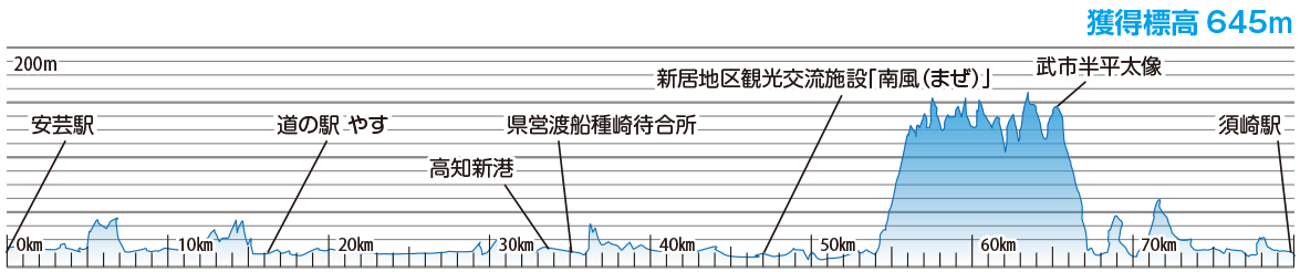 업다운이 적은 해안선을 따라와 기복이 심하고 체력이 필요한 요코나 스카이라인을 맞춘 코스.웅대한 태평양을 옆으로 주행할 수 있어 훌륭한 조망을 만끽할 수 있다.