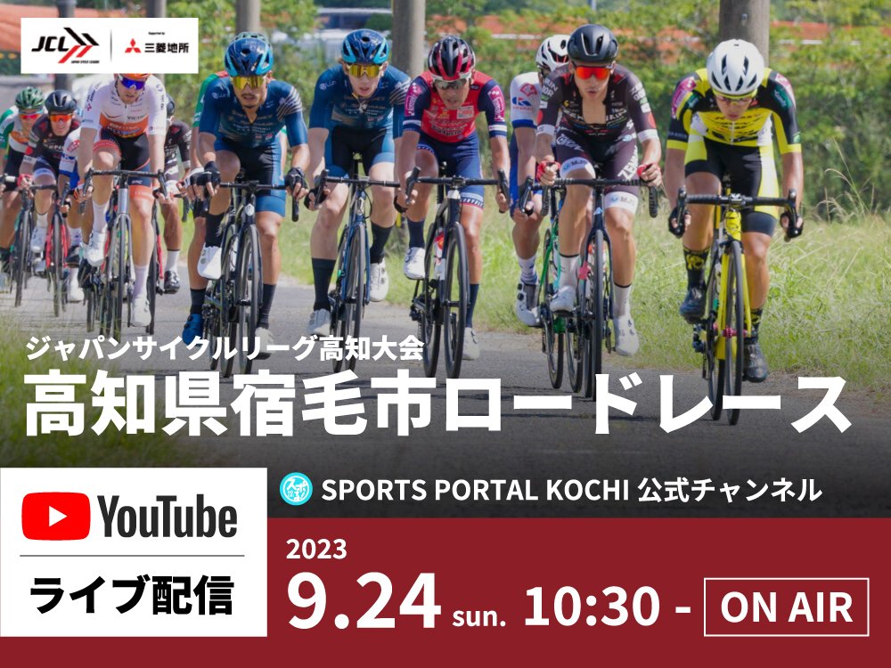 9월 24일(일)에 스쿠모시에서 개최되는 자전거 경기의 프로 로드 레이스 투어 「재팬 사이클 리그」의 고치 대회를 「스포한다!고치」의 YouTube 채널에서 라이브 전달을 실시합니다!