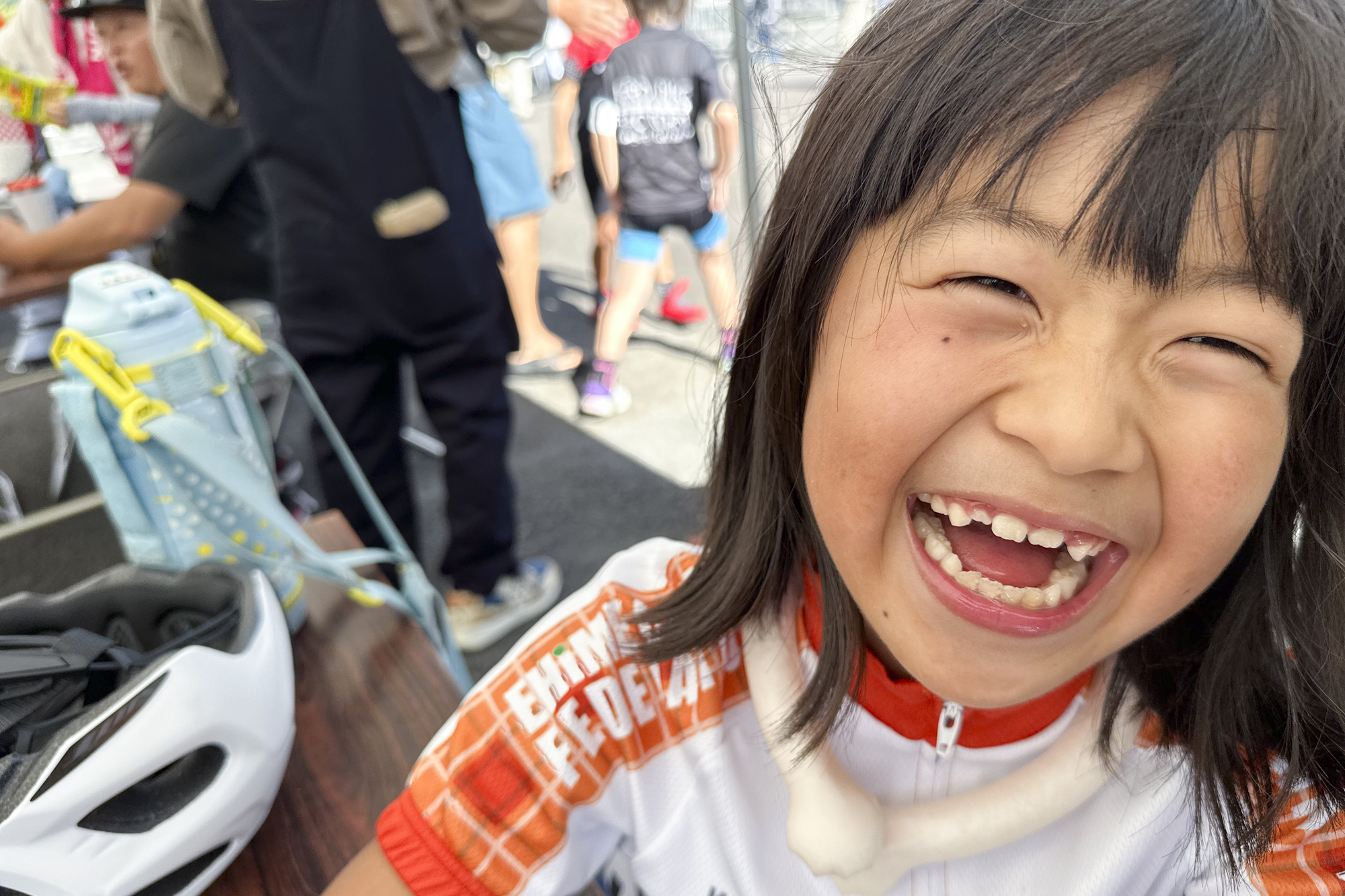 에히메현에서 참가한 초등학교 2학년 여자아이(사진:왼쪽)는, 원래 란오토바이 경험자로 지금은 현지 사이클링 주니어 클럽에서 활동 중.절대 우승하고 싶다!1등이 된다!”고 말했다.