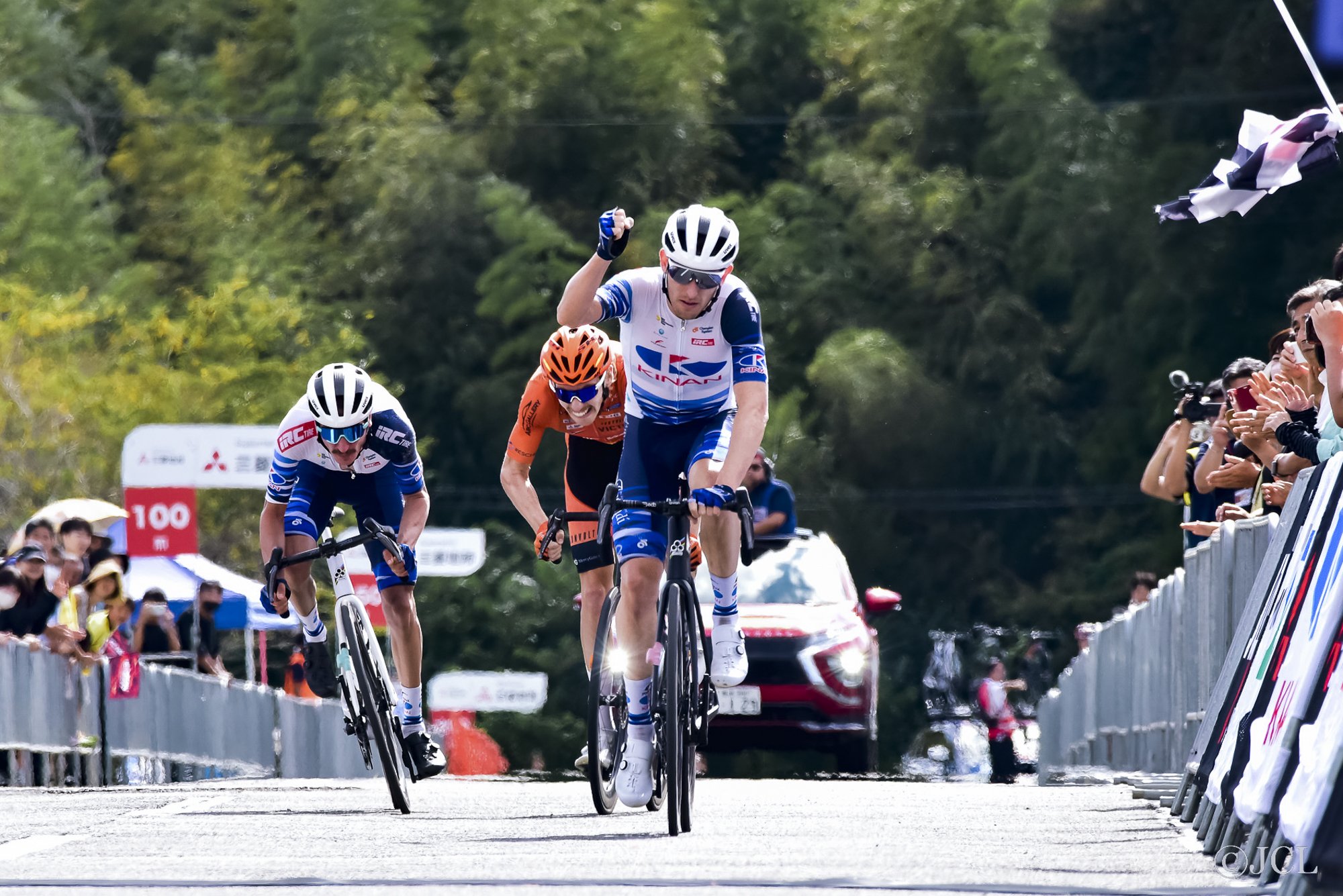 승부의 행방은 홈 스트레이트까지 반입되었습니다.많은 관객이 지켜보는 가운데 라이언 선수가 마지막 스퍼트!가츠 포즈로 훌륭하게 골을 잘랐습니다.또한 당일은 적극적인 경기 전개가 되어, 전 대회를 웃도는 평균 시속 44km의 하이 스피드인 레이스가 되었습니다.