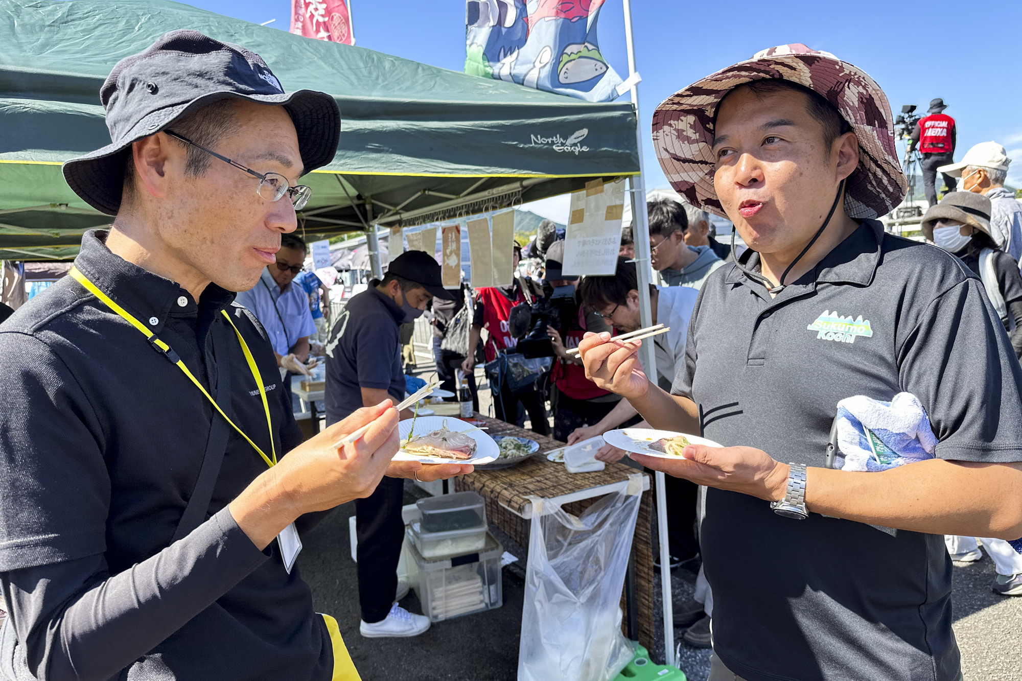 스타트·골 회장에서도 많은 사람이 관전.회장 내에는 특산품이나 음식 부스도 출점해, 현지 명산의 「브리의 타타키」가 행동하는 장면도.또 스쿠모산의 완숙소 여름을 100% 사용한 작은 여름 주스도 인기축제와 같은 분위기 속에서 지역의 여러분이 레이스를 즐기고 있었습니다.