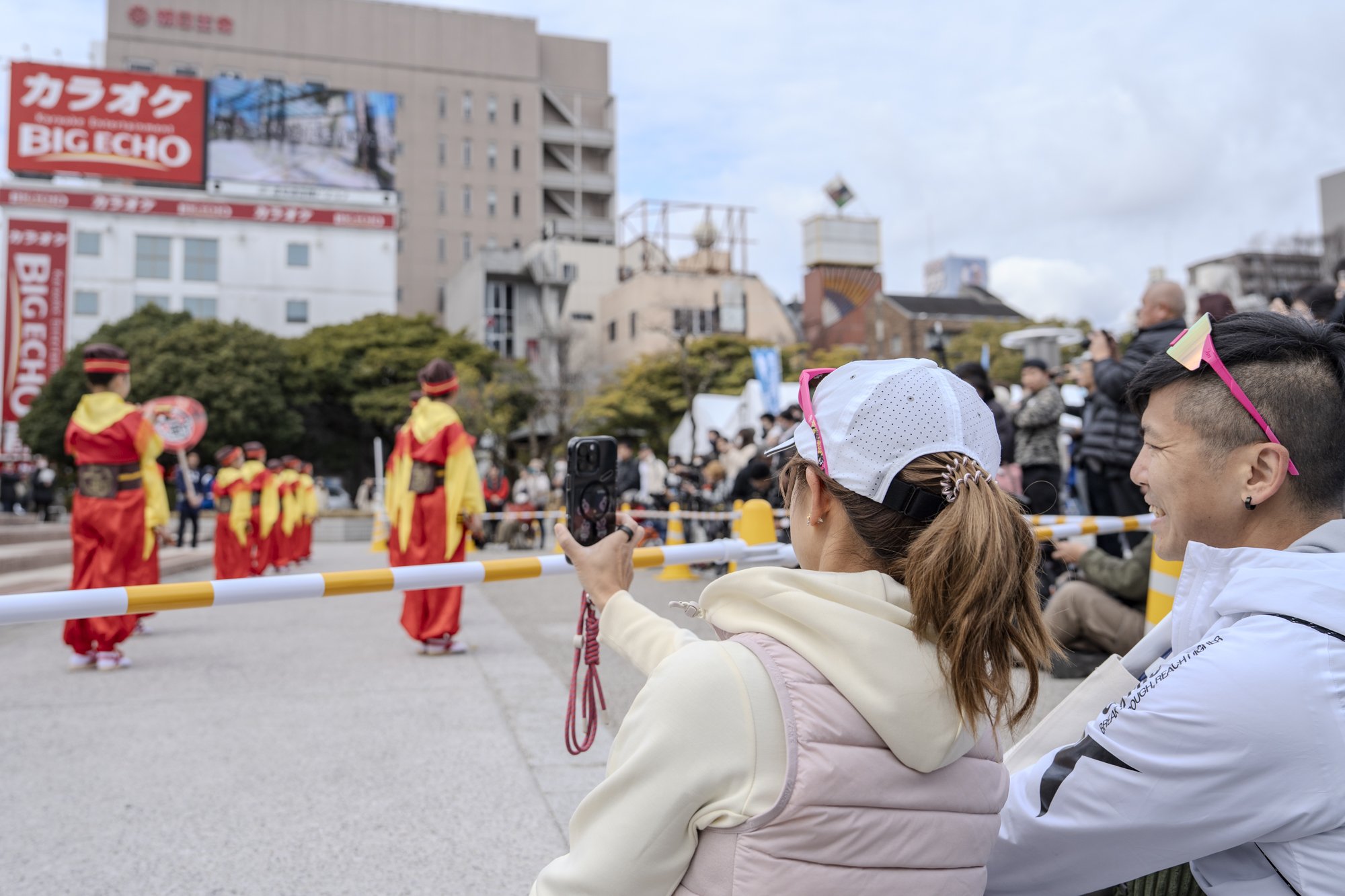 요사코이 나루코 춤을 즐기는 리안씨와 제로씨요사코이 나루코 춤은 고치현에서 태어난 춤.지금은 세계 30개국 이상에서 사랑 받고 있습니다! 이러한 독자적인 문화를 접할 수 있는 것도 고치현을 방문하는 즐거움의 하나입니다.