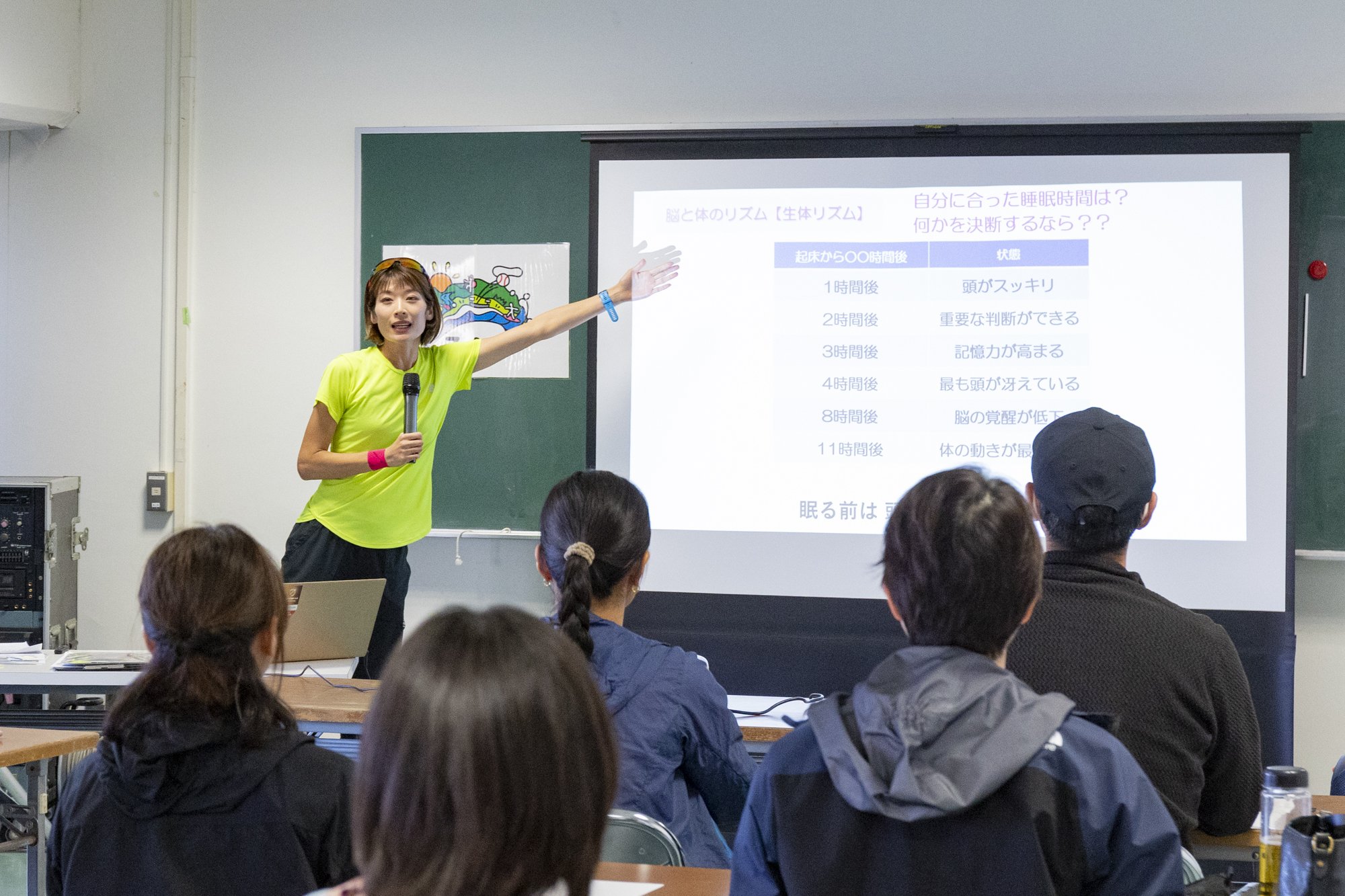 풀 마라톤을 앞둔 러너는 무엇을 조심해야 할까?또 어떻게 하면 실전의 퍼포먼스가 올라갈 것인가?그것을 강습해 주신 것은 모델·탤런트이며, 연예인 마라톤 러너로서도 활약되고 있는 니시타니 아야코씨입니다니시타니 씨는 2016년 도쿄 마라톤에서 3시간 1분 32초의 개인 최고기록을 세웠다.수면 개선 강사의 자격을 살린 강습회도 각지에서 실시하고 있습니다.