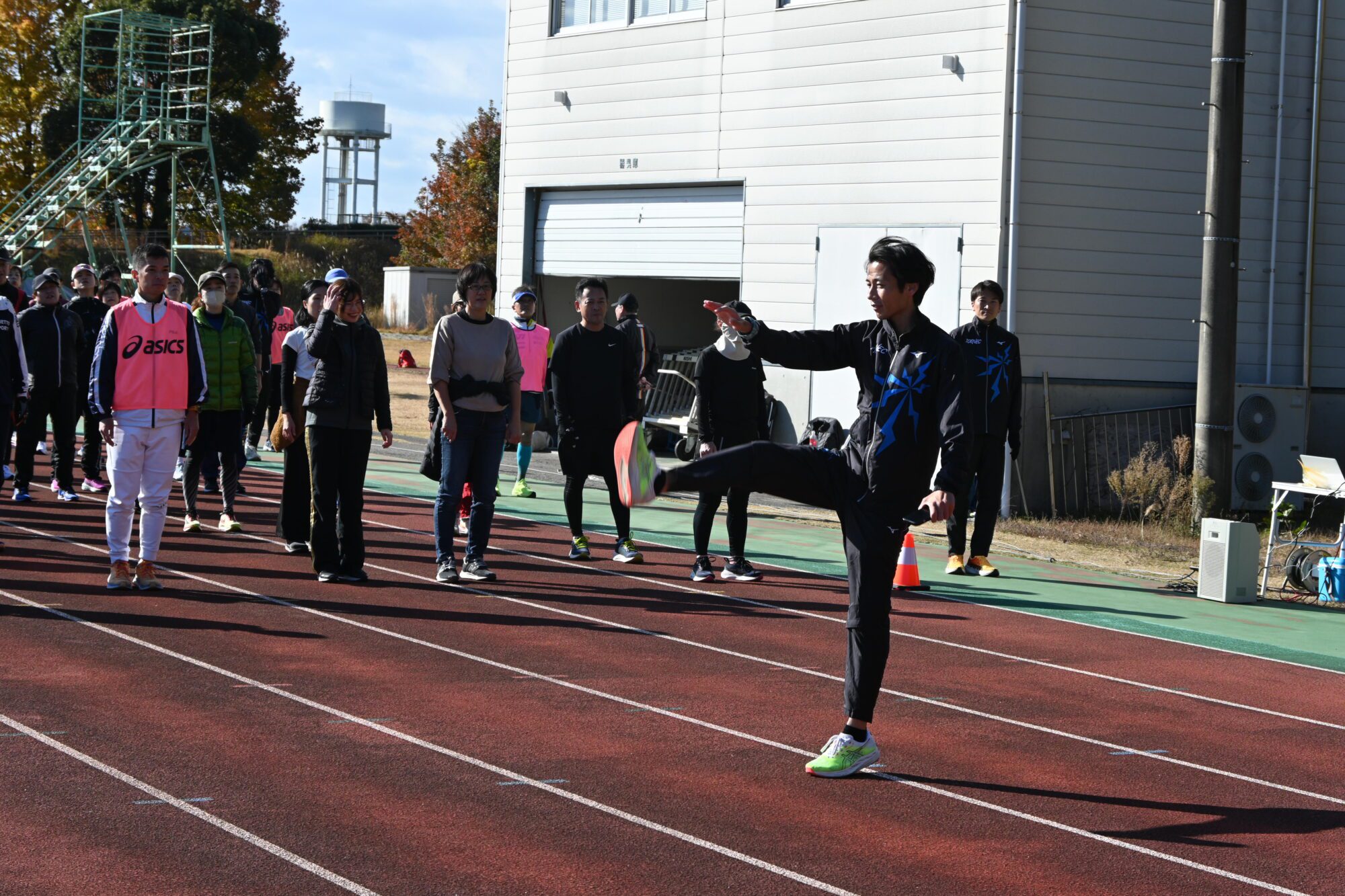 계속해서, 코야마 선수가 러닝 전에 중요한 「움직이기」의 실천 지도를 실시했습니다. 동적 스트레치나 워밍업 드릴을 도입한 프로그램으로 몸의 가동역을 넓히는 효과적인 방법이 소개되었습니다.