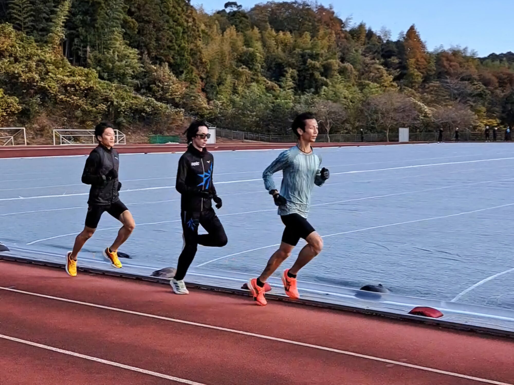 이번 세미나의 테마의 하나에는 「보고 기억하는 주 기술」이라고 하는 것으로, 3 선수가 1km 3분 페이스의 「견본주」를 피로했습니다.