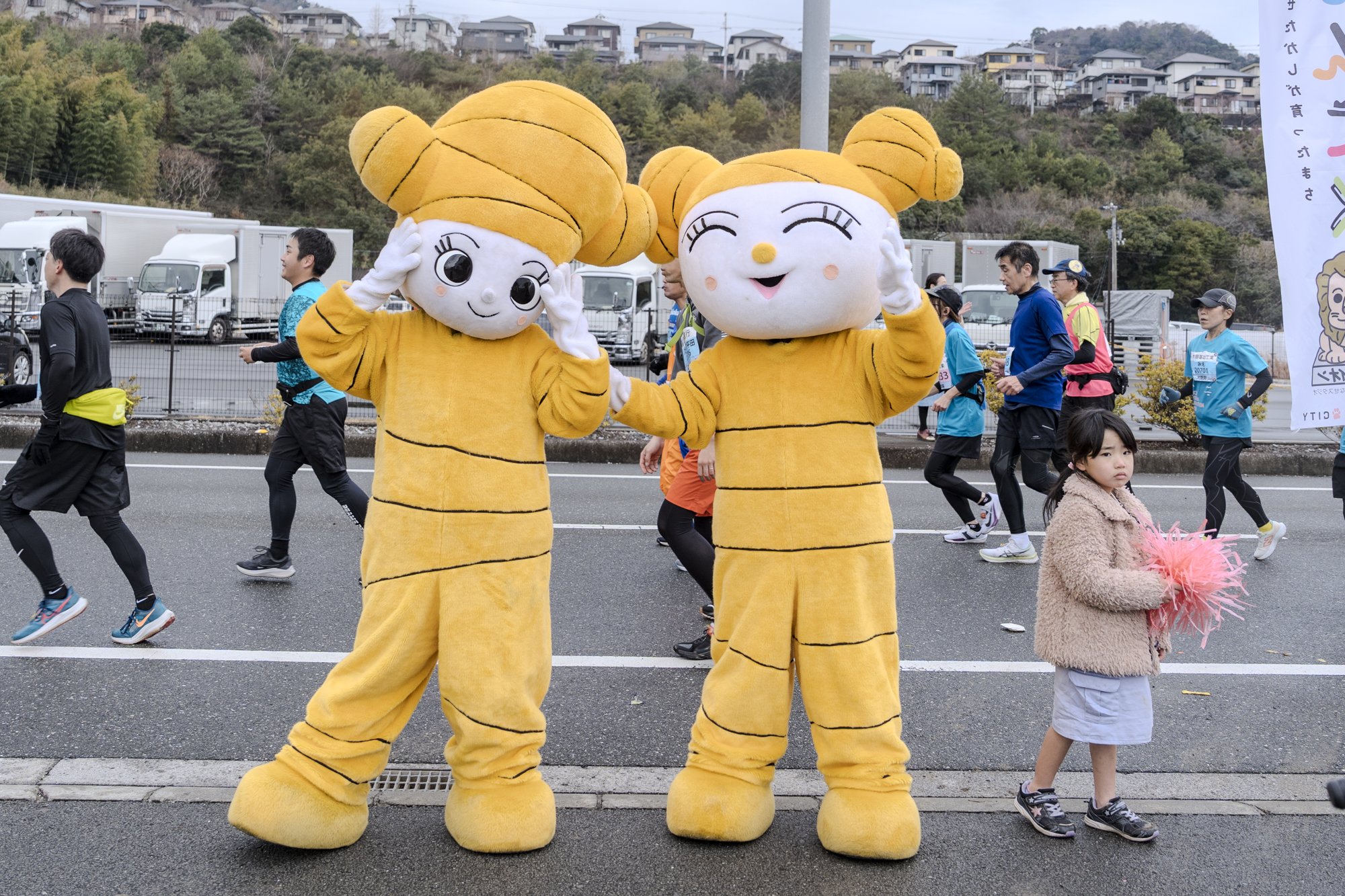 코스를 달리고 있으면, 여기저기로부터 미소와 박수, 그리고 건강한 성원이 도착해 옵니다.그 중심에 있는 것이, 고치현 각지의 당지 캐릭터들!