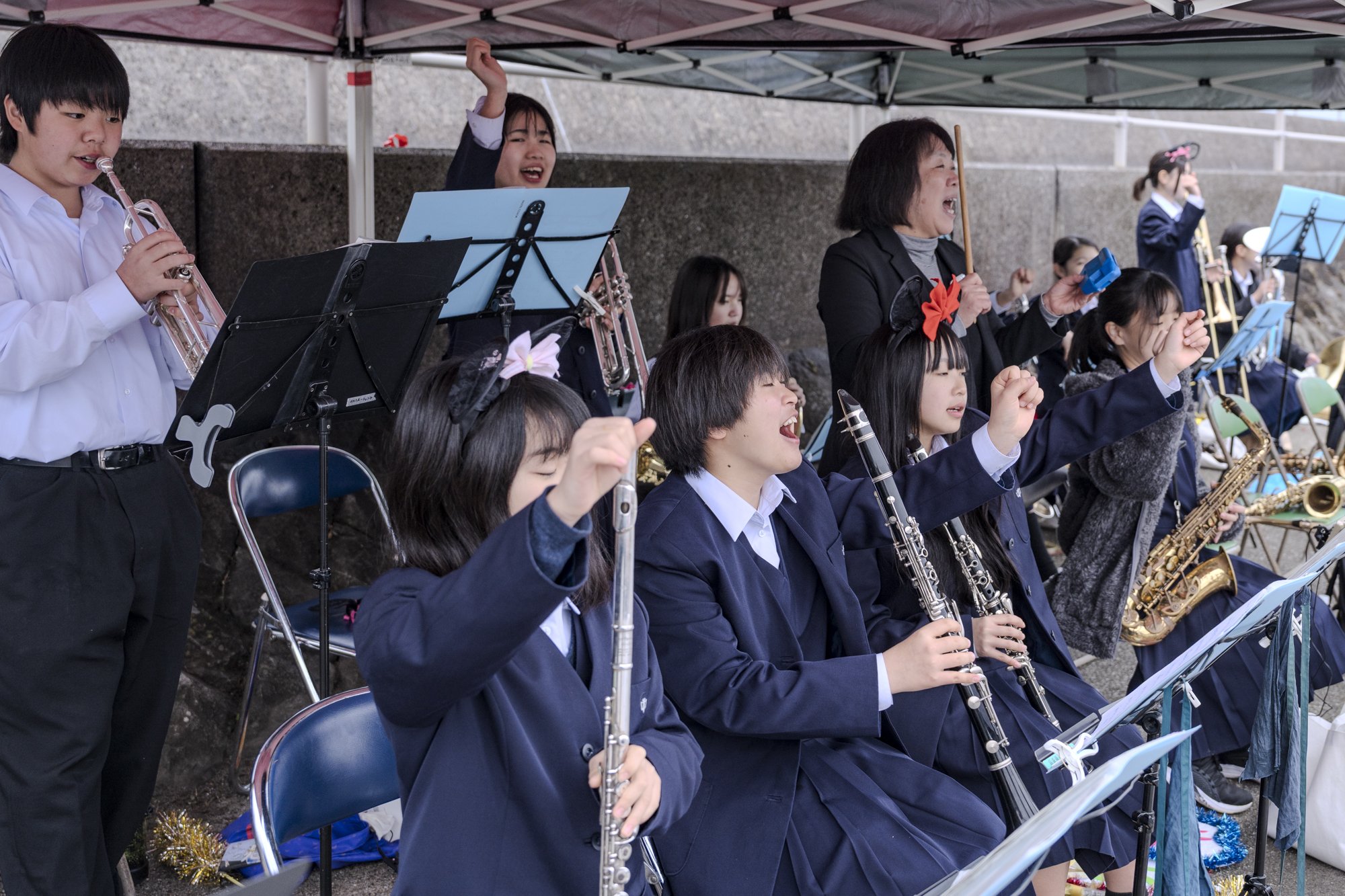 현지의 고등학교, 중학교 취주악부에 의한 생연주