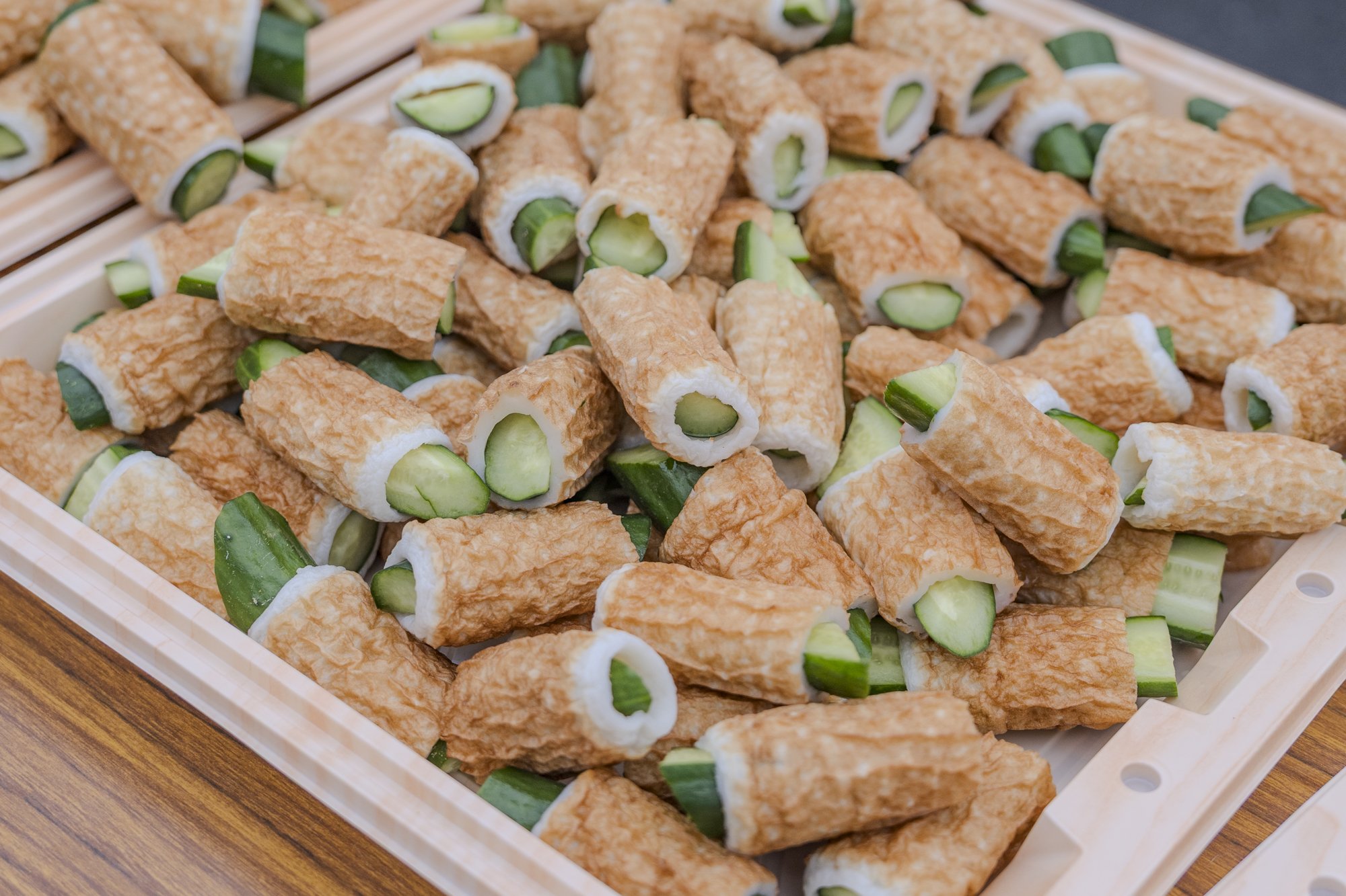주목해야 할 것은 무심코 찍고 싶어지는 그 외형.타케와 안에 오이가 마루타 하나즈돈!라고 찌르고 있는 비주얼은 수수한데 임팩트 대게다가 치쿠와 오이도 맛이 강하다.