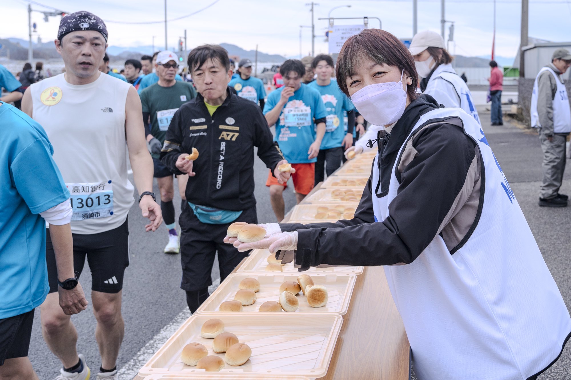 그런 러너의 강한 아군으로서 고치료마 마라톤의 에이드에서는 최다, 무려 3회나 등장하는 것이 "고치 야마자키 빵"!