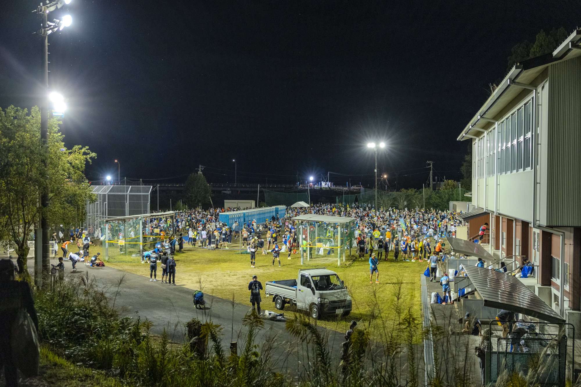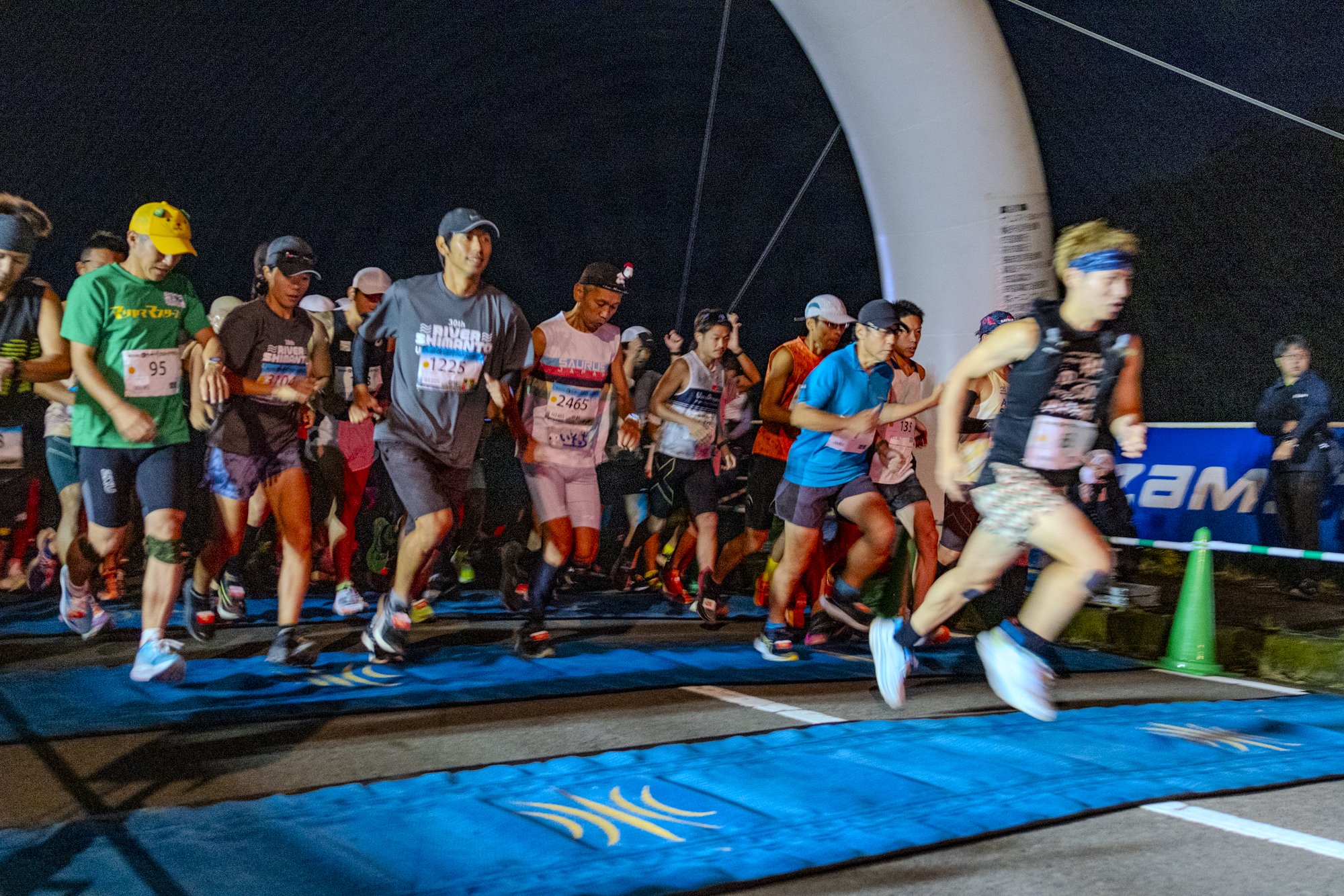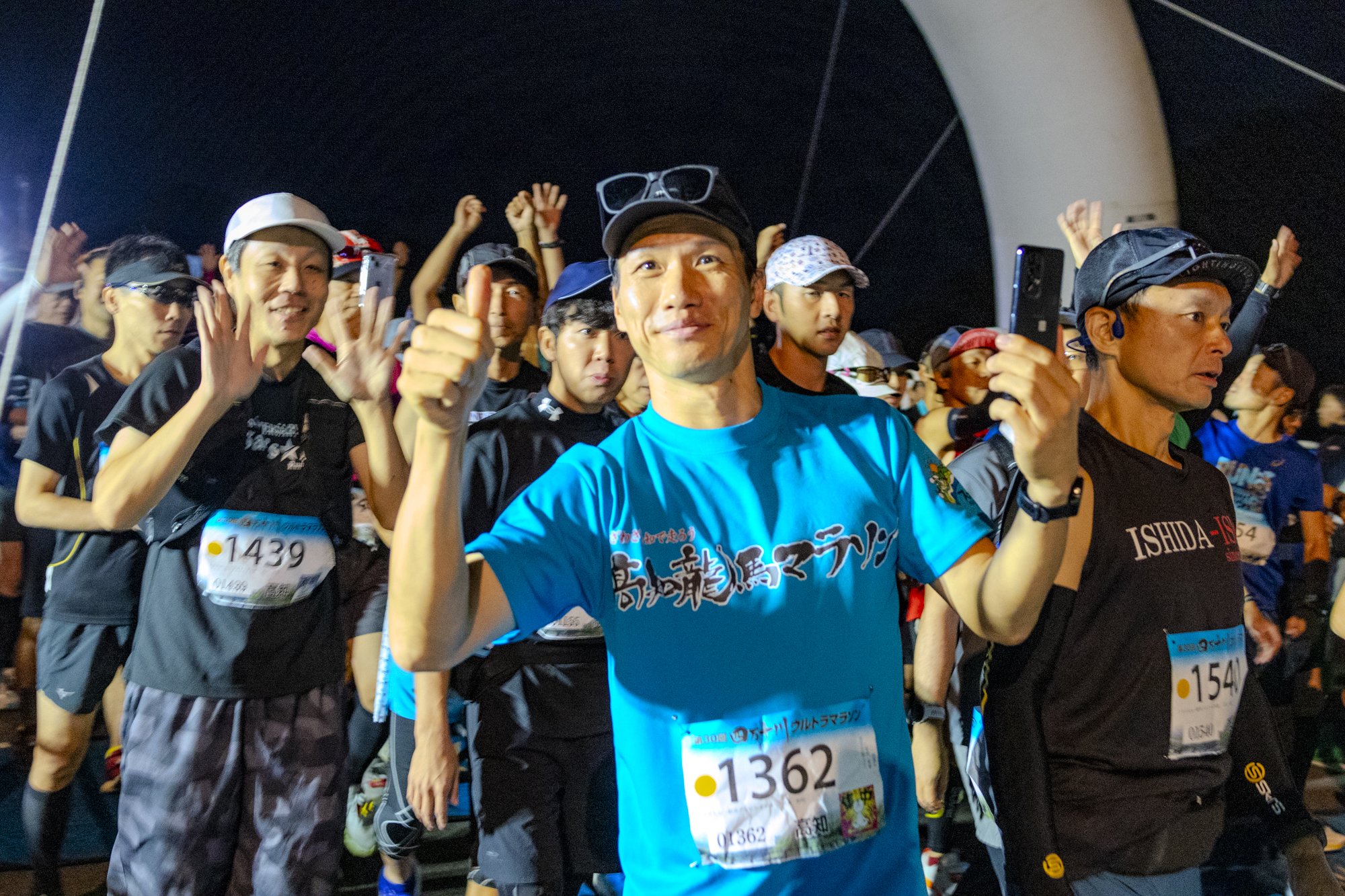 대회 당일, 아직 새벽 전 이른 아침, 시만토가와 울트라 마라톤의 스타트 지점이 되는 구 와라비오카 중학교에 발을 들여놓으면, 놀라움의 광경이 퍼지고 있었습니다.라이트에 비춰진 그라운드에는 아직 새벽 전 이른 아침에도 불구하고 거기에는 이미 1600명의 러너들이 모여 있어 그 많음에 무심코 숨을 삼켰습니다.