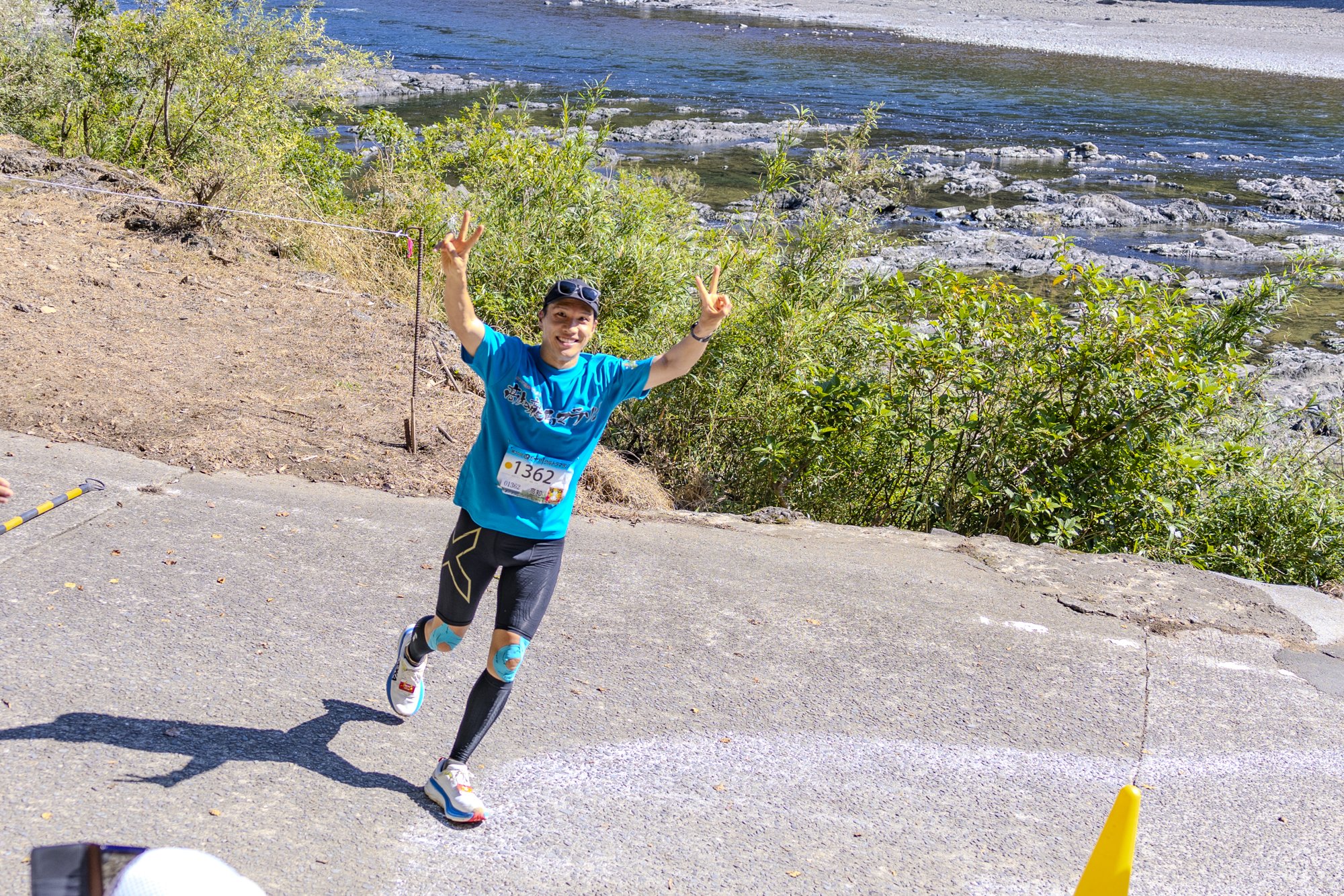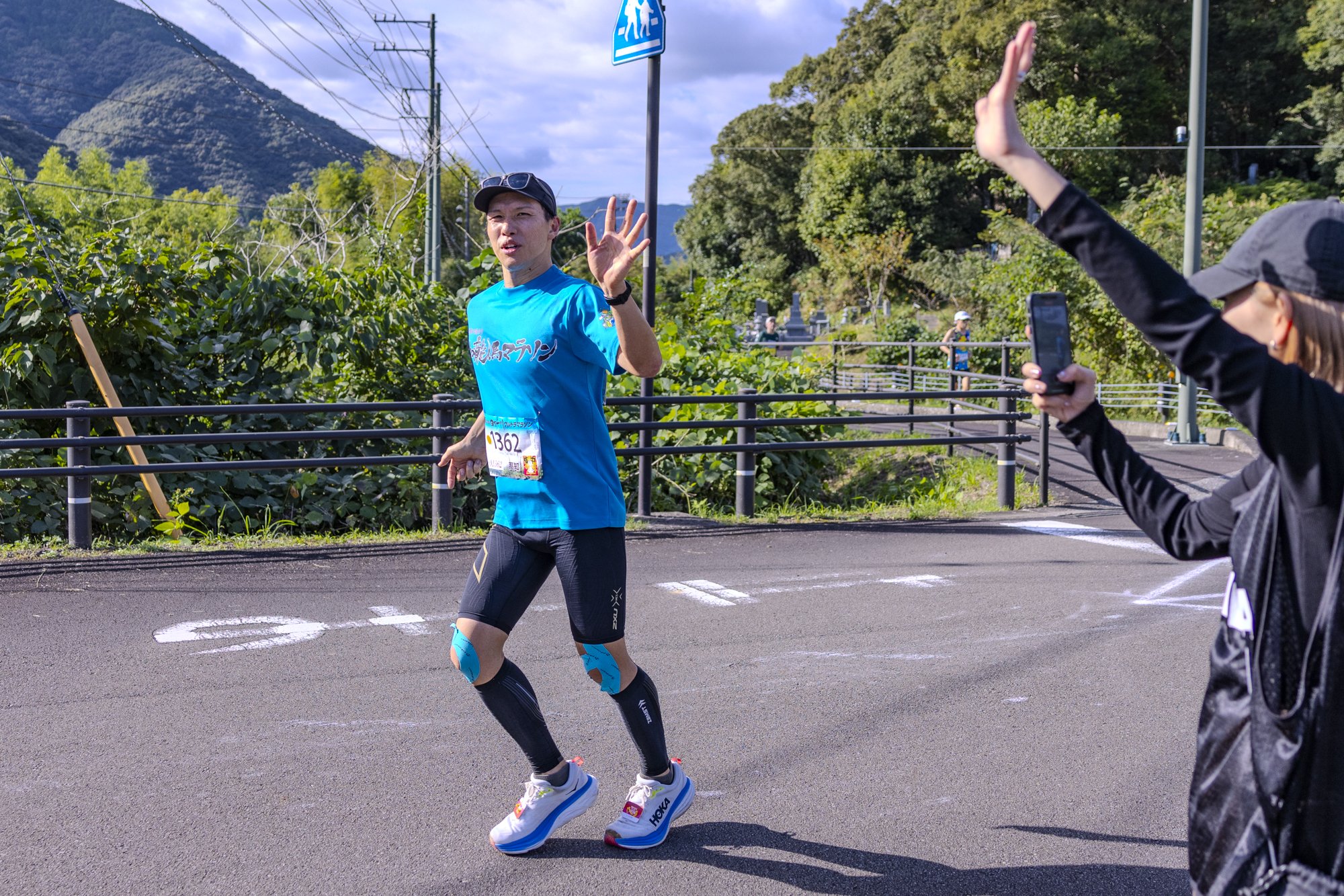 “목표 달성 못해 죄송합니다.이것으로 2연패.아니 솔직히 힘들었습니다.지금까지 가장 힘들었습니다.75킬로를 지나 다리가 움직이지 못했을 때는 마음이 부러졌습니다.그렇지만, 응원해 주고 있는 현지의 성원도 격려가 되었고, 함께 노력하고 있는 다른 러너의 모습으로부터도 에너지를 받았습니다.에이드도 많이 있습니다만, 자원봉사 여러분의 따뜻한 서포트나 많은 분들의 협력하에, 시만십의 경치를 보면서 달리고 있으므로, 시만토가와 울트라 마라톤에 관여해 주고 있는 분들에게 정말 감사하네요.
