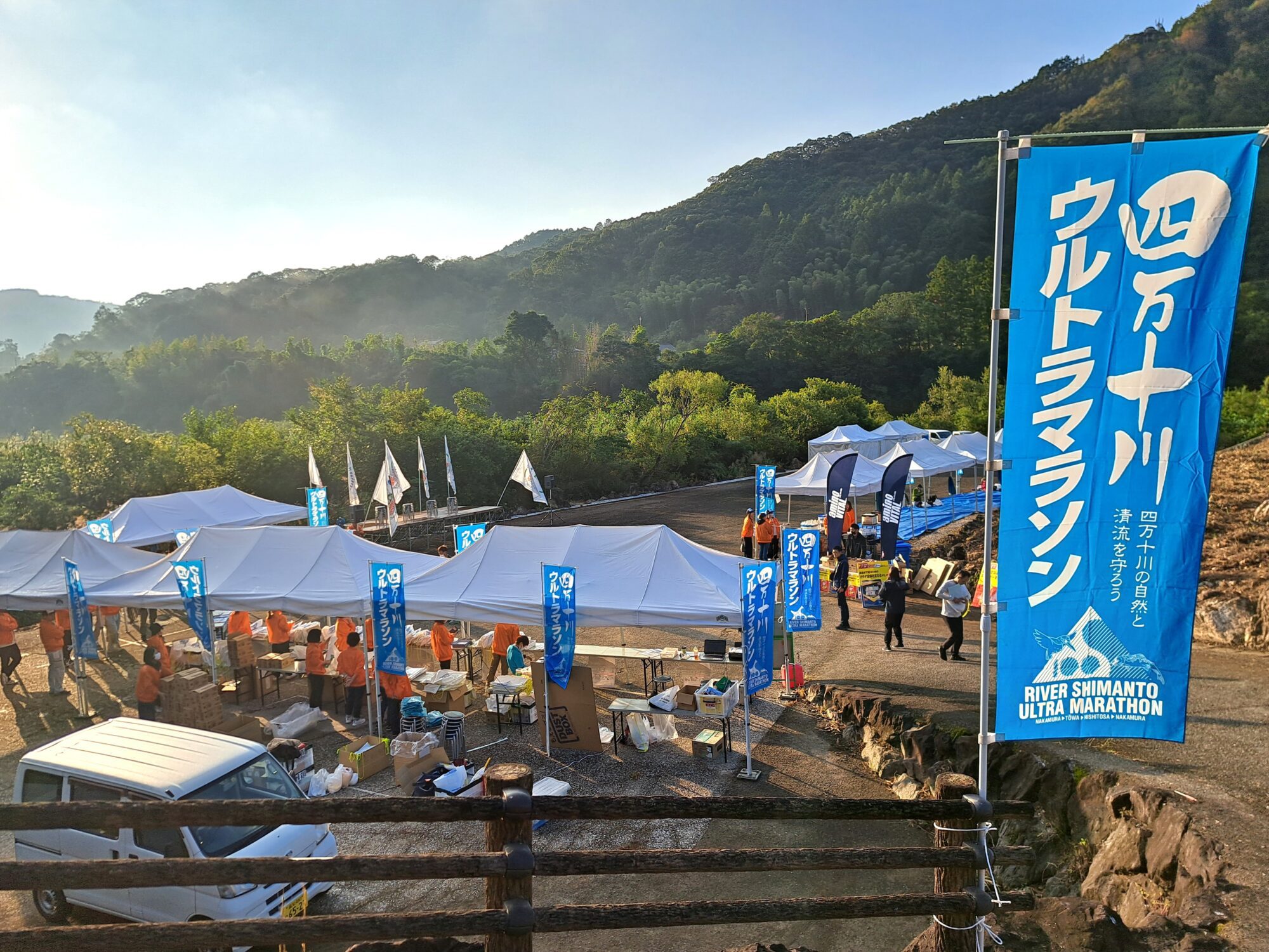 시만토가와 울트라 마라톤은 시만토초와 시만토시의 협력 아래 개최되고 있어 스타트는 시만토초, 골은 시만토시가 되고 있습니다