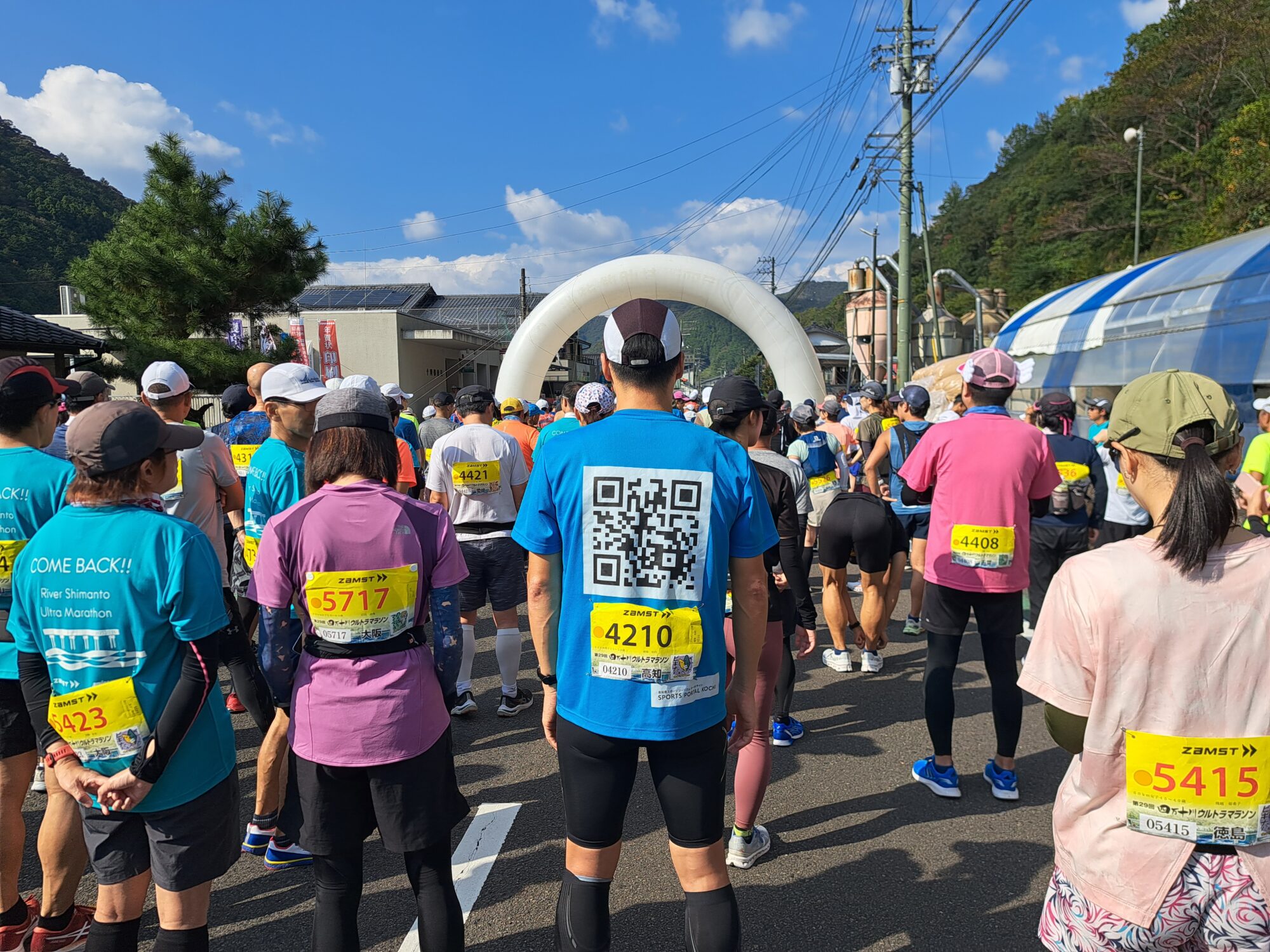 고치 시내에서 서쪽으로 약 2시간, 시만토초 토가와에 있는 스타트 회장(60km의 부)의 코이노보리 공원에 도착.