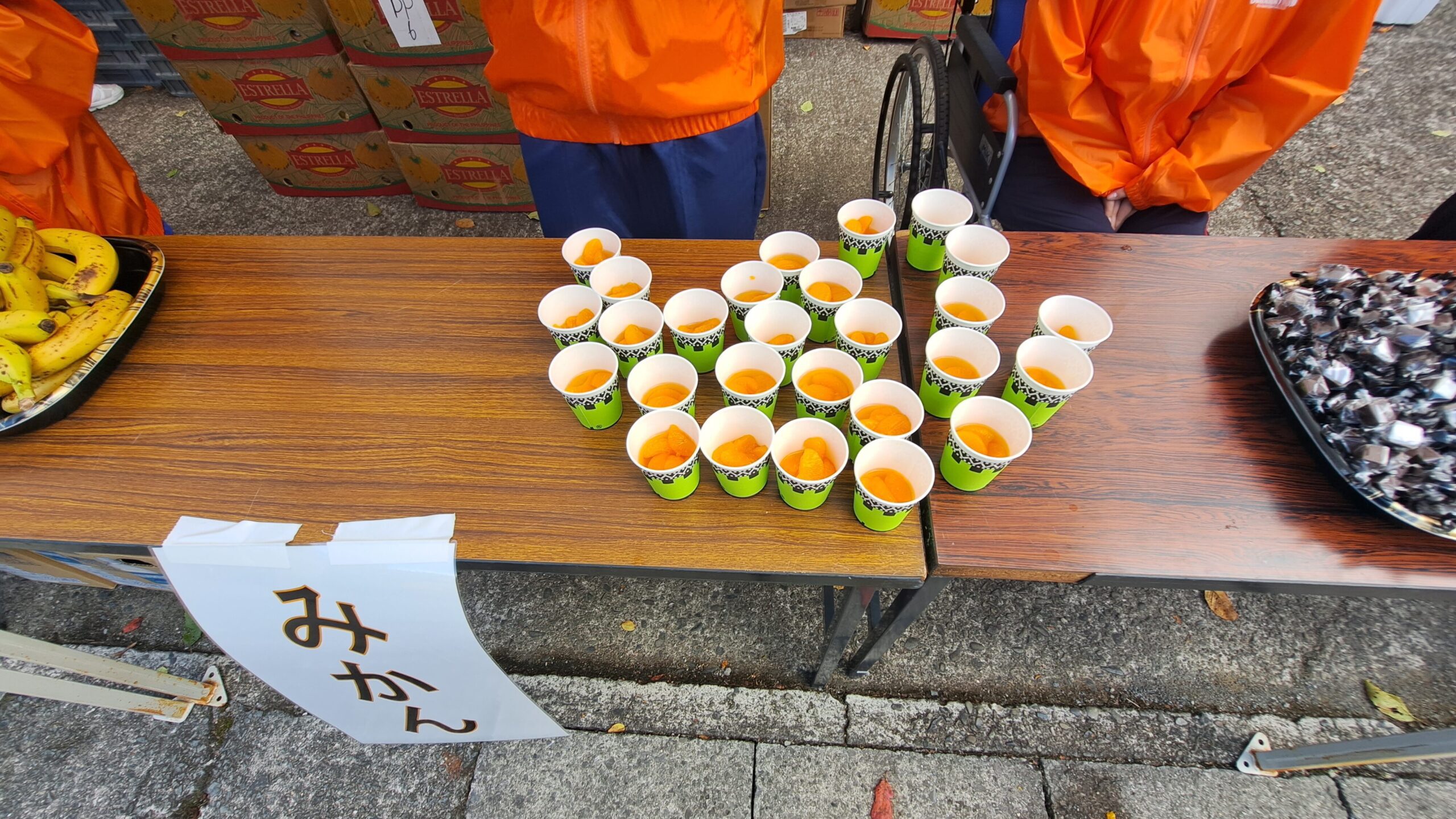 시간과 함께 기온도 오르고 땀의 양도 늘고 있었기 때문에, 2.5km마다의 급수에서는 제대로 수분 보급을 해, 에너지가 되는 바나나나 주먹밥, 피로 회복에 효과가 있는 매실 건조(쿠엔산 효과)등도 보급하면서 골을 목표로 합니다.