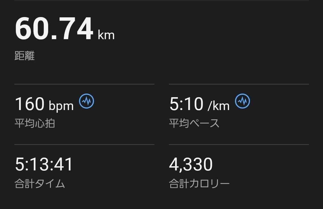 50km를 넘은 근처에서는, 굵과의 뒷면이 몇 번인가 힘들 것 같았습니다만, 다리를 때려, 어떻게든 60km를 완주할 수 있었습니다.