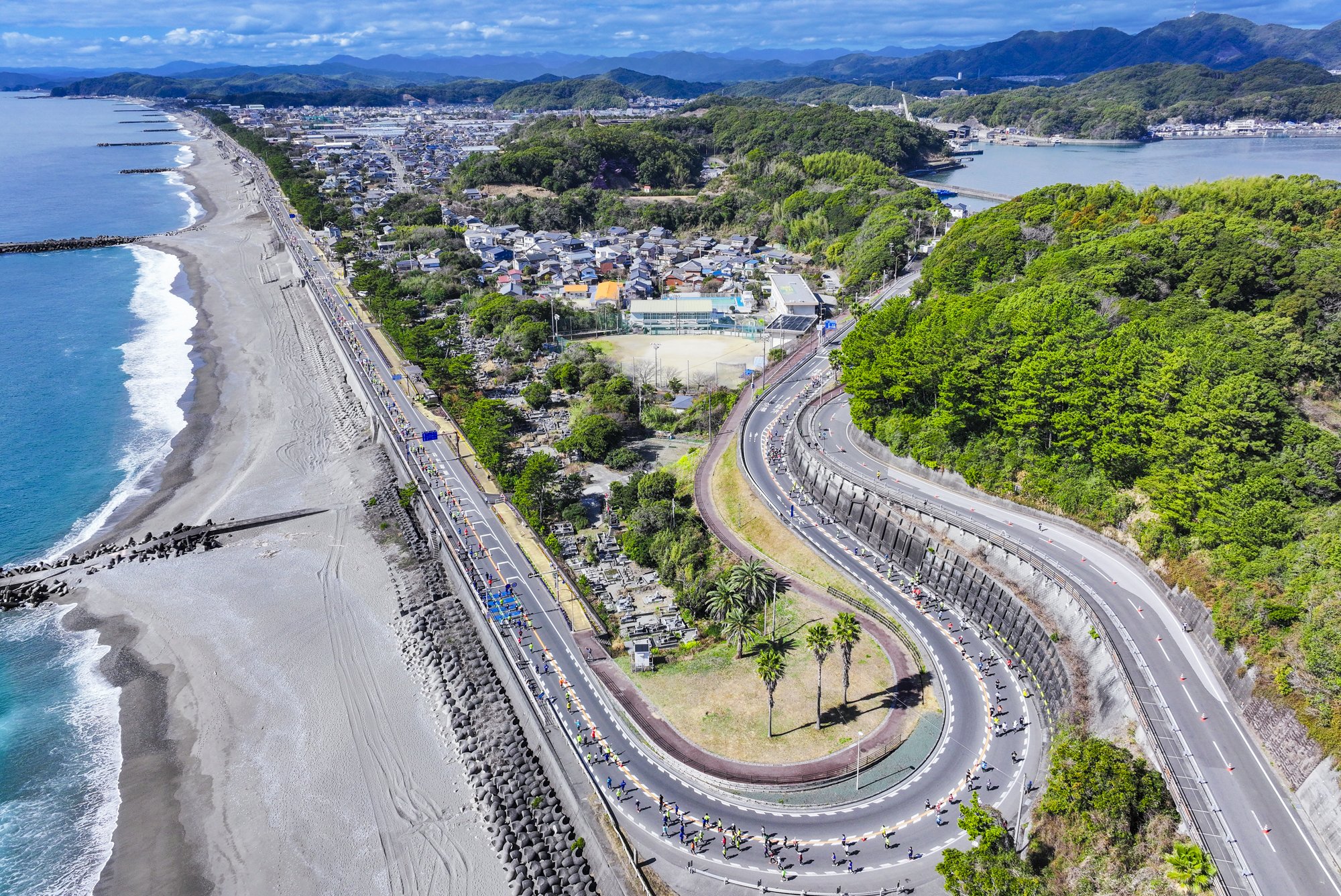 중심 시가지로 시작해 전원 풍경을 빠져 태평양 절경을 둘러싼 코스로 전국에서 모이는 러너들이 도전하는 풀 마라톤.길가로부터의 성원은 러너에게 있어서 무엇보다 힘이 됩니다.