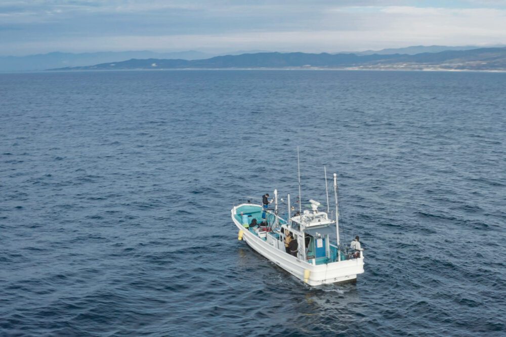 아키 어항의 집합시간은 6시 반.전 어부의 마츠다 나오미 선장이 경영하는 유어선 「카미에이마루」씨에게 타, 막상 출선입니다!