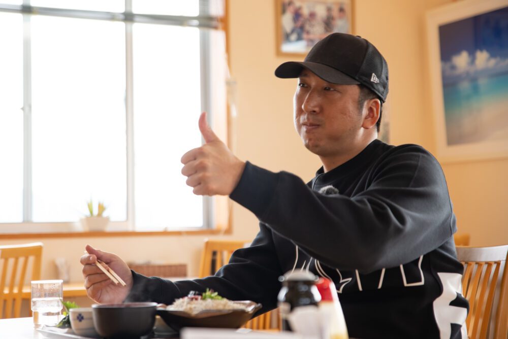 한신 타이거스 재적시 캠프에서 몇번이나 방문했던 후지카와씨에게 있어서, 아키의 시라스 덮밥은 추억의 맛입니다.