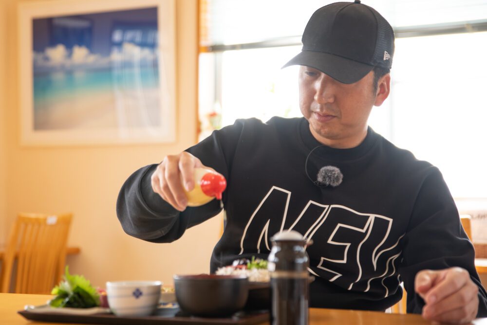 「기다리게 했습니다~」라고 운반되어 온 덮밥에 타레와 실생 유자를 걸고, 호쾌하게 뺨치는 후지카와씨.“아~맛있어!”「굉장히 맛있다!」라고 극찬의 목소리가 멈추지 않습니다.