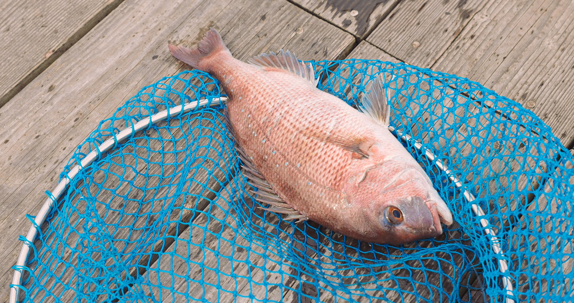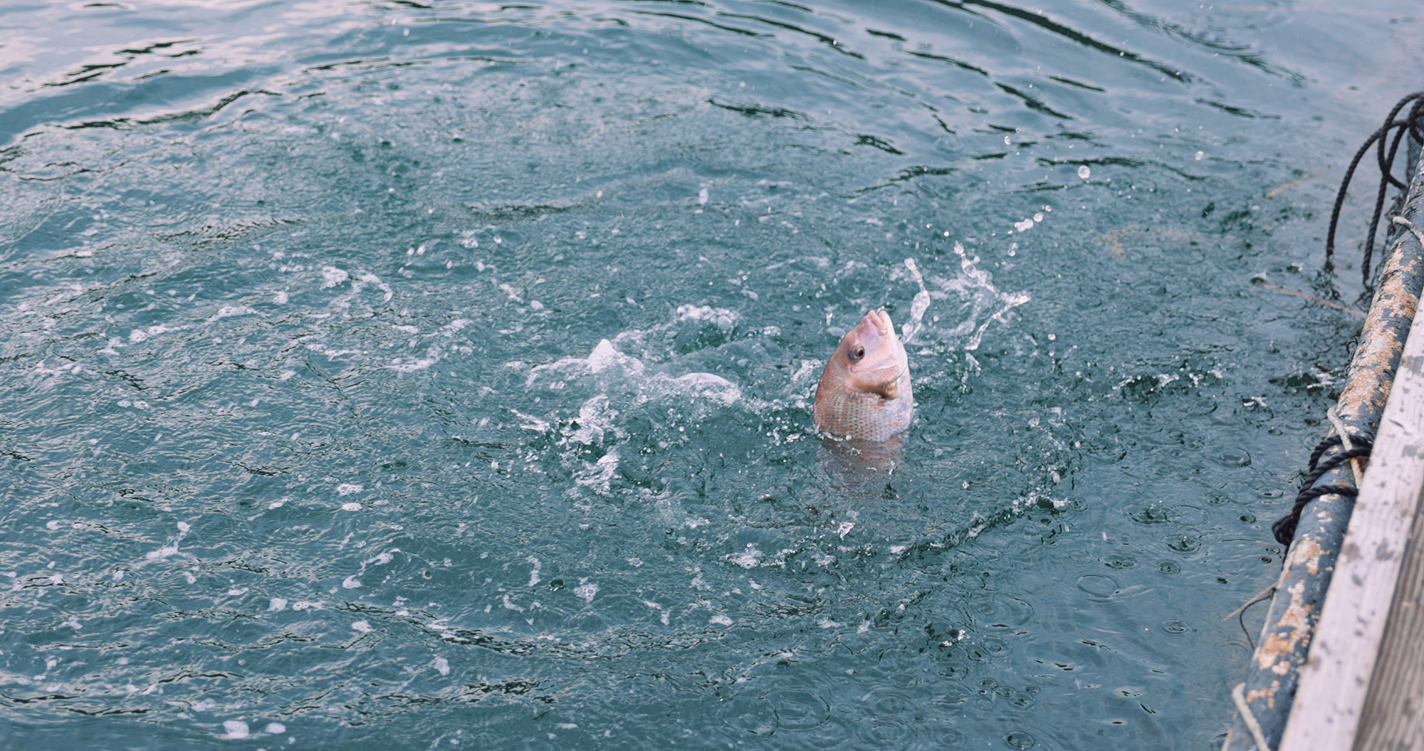 체험 시작부터 15분, 드디어 물고기가 잡혔습니다.잡은 것은 타이!