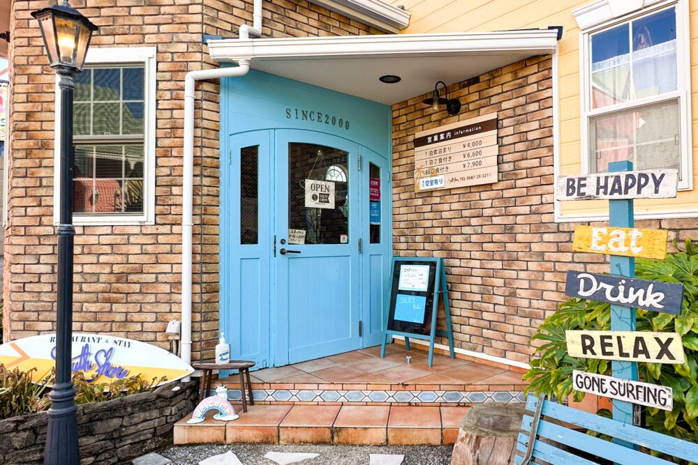 새파란 바다가 펼쳐지는 생견해안 주변은 마치 해외의 해변 리조트를 방문한 듯한 화려한 건물로 장식되어 있습니다.이 지역의 일각에 점포를 두고 있는 「사우스 쇼어」는 가나자와씨가 2000년에 오픈한 숙박 시설 겸 레스토랑입니다.객실은 1인실부터 5인실까지 다양한 15개의 객실이 마련되어 있습니다.