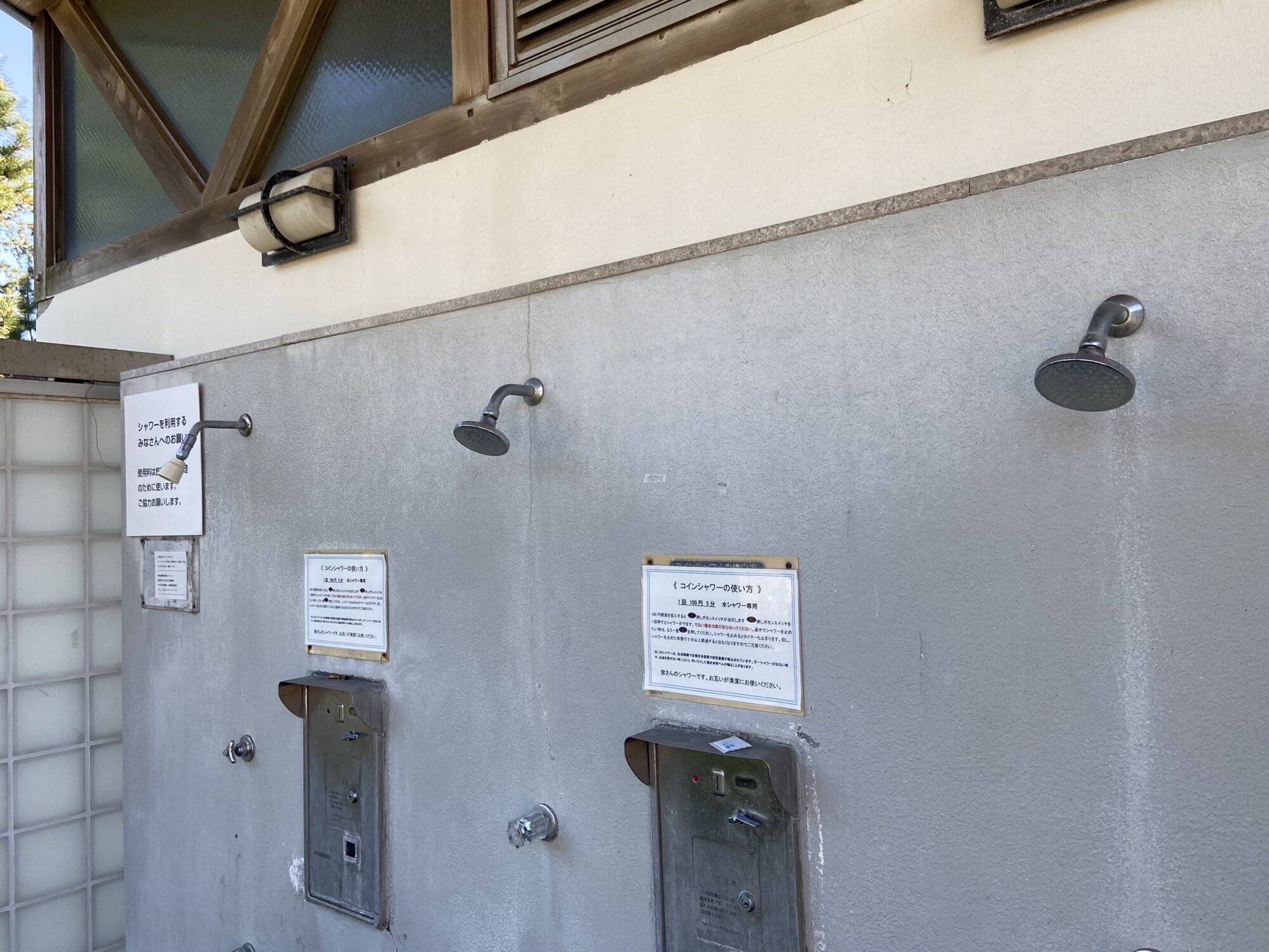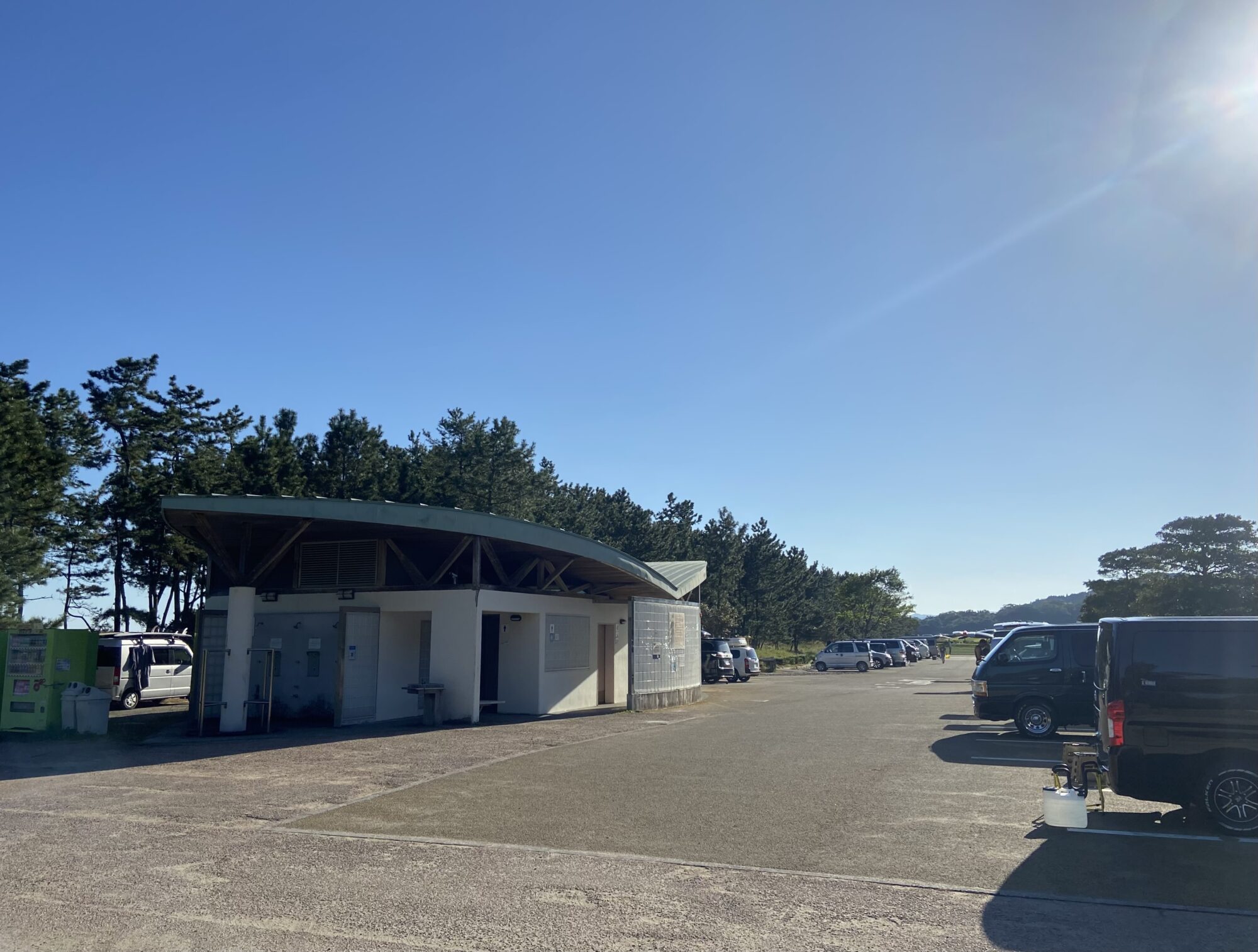 해변 정면에는 50대 이상의 무료 주차장과 동전식 물 샤워(5분/100엔), 화장실도 완비되어 있습니다.
