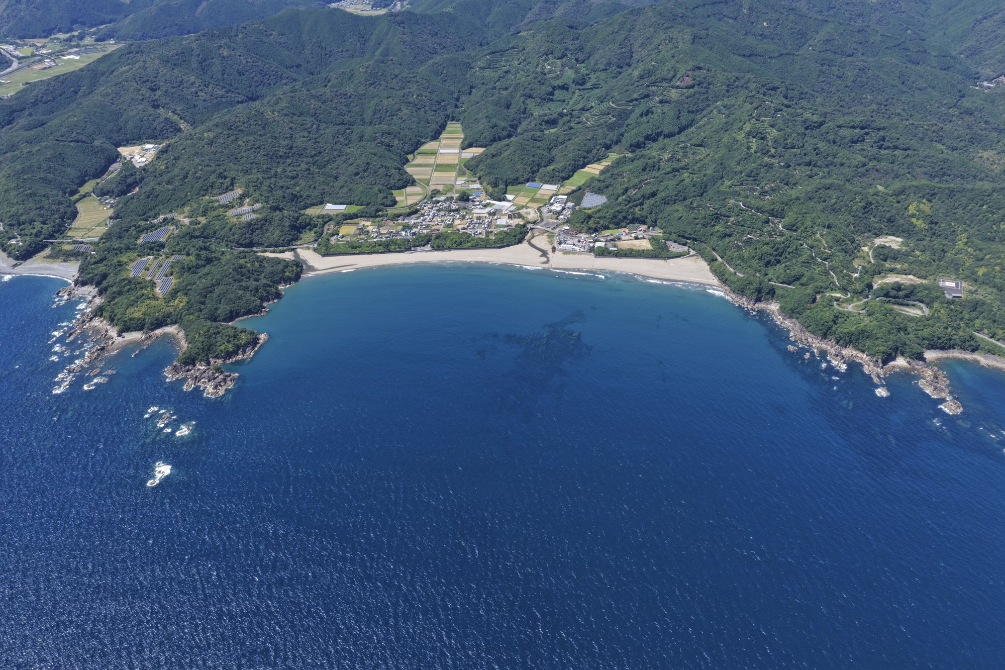 도쿠시마 현 경계에 가까운 전체 길이 약 1,000m의 남북으로 늘어나는 활 모양 비치.동남동 방향으로, 중앙에는 큰 바위가 있어 지형에 변화를 낳는다.오프쇼어는 북서쪽.