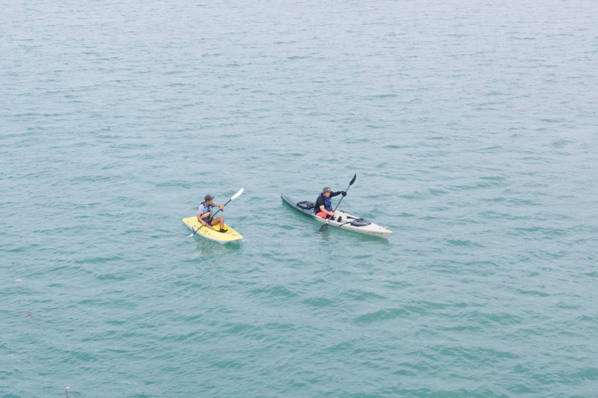 이케씨를 태운 카약은 스탭 4명에게 들어 올려져 착수해, 유유히 바다에 갑니다.역시 선수 처음 카약입니다만 전복하지 않고 만을 스위스이 나아갑니다.