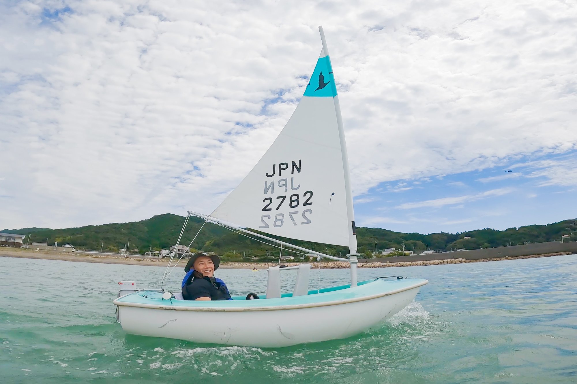 초보자용 소형 요트에 올라 스탭 4명이 들어 올려 바다에스탭이 조작 방법을 지도해, 그대로 움직이면 굉장히 전진.