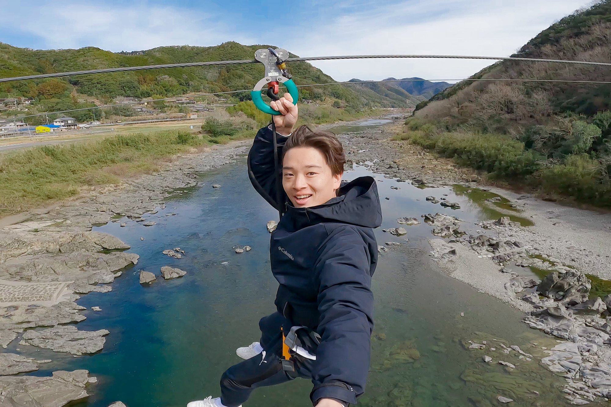 질주하는 공중 산책.장대한 경치를 즐길 수 있는 시만토가와 지플라인
