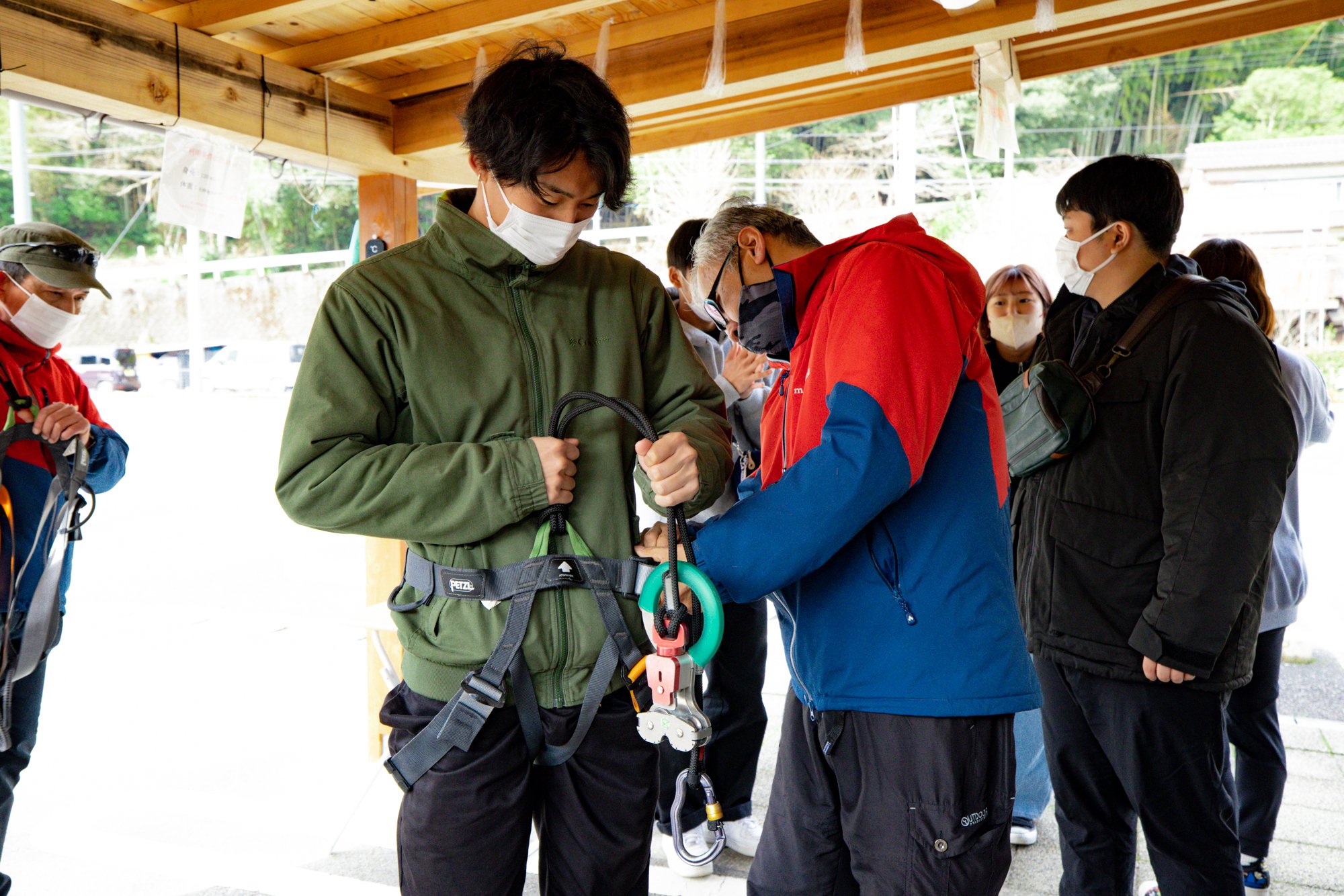 체험에 필요한 서약서를 쓰고 체험요금을 지불하면 스탭이 하네스라는 장치를 장착해 줍니다.