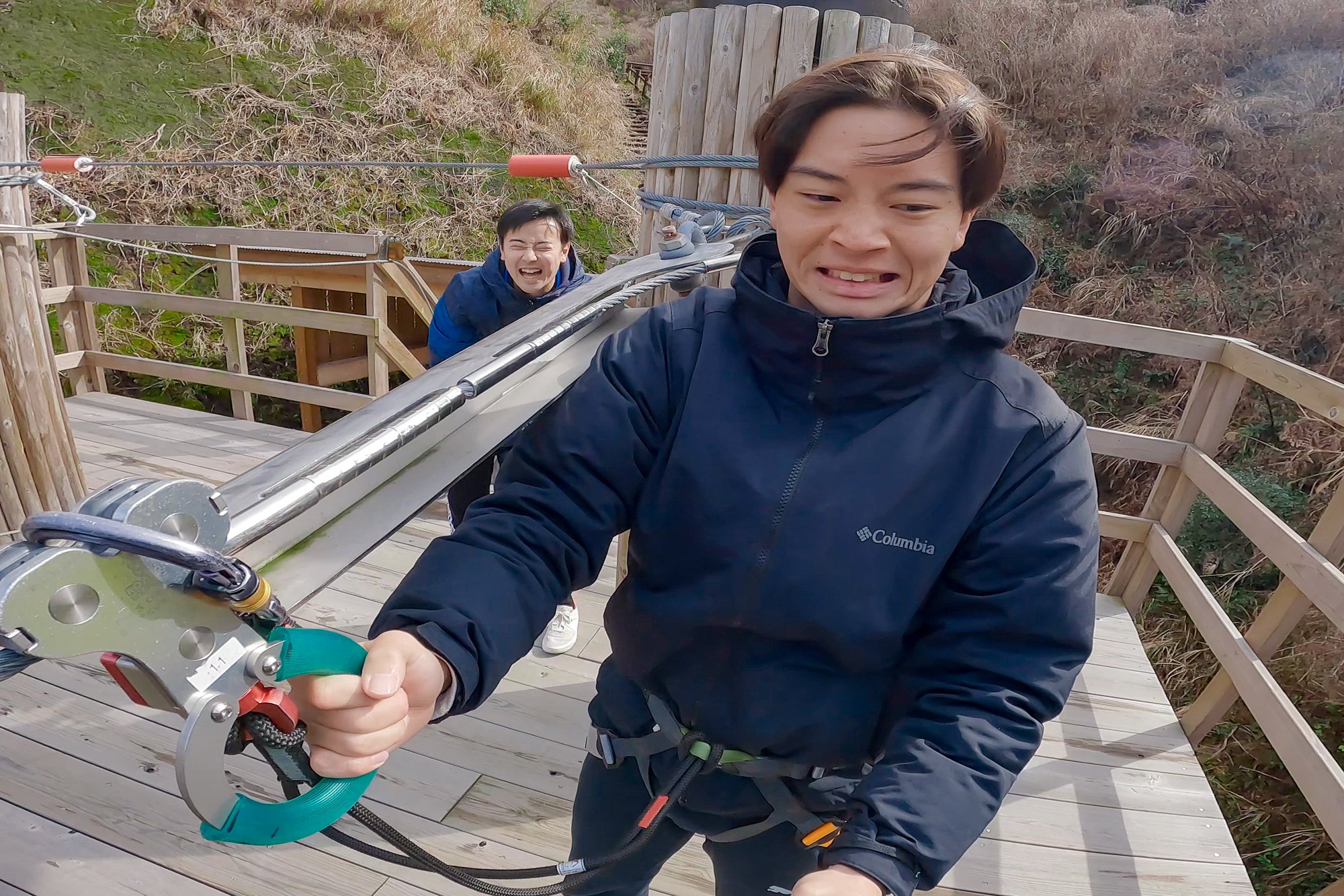 스탭의 카운트다운으로, 드디어 덱에서 발을 떼고, 집 라인이 스타트입니다.