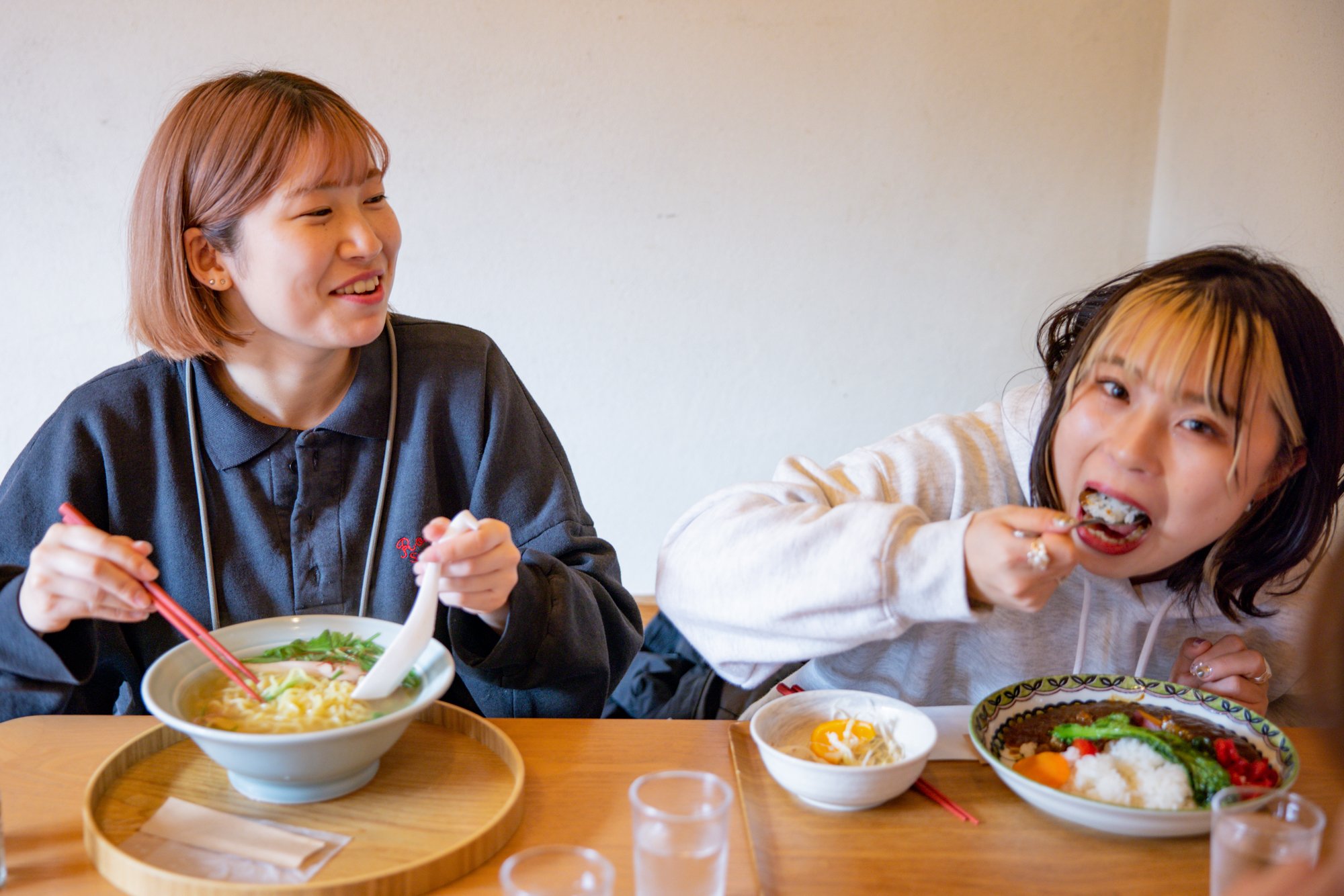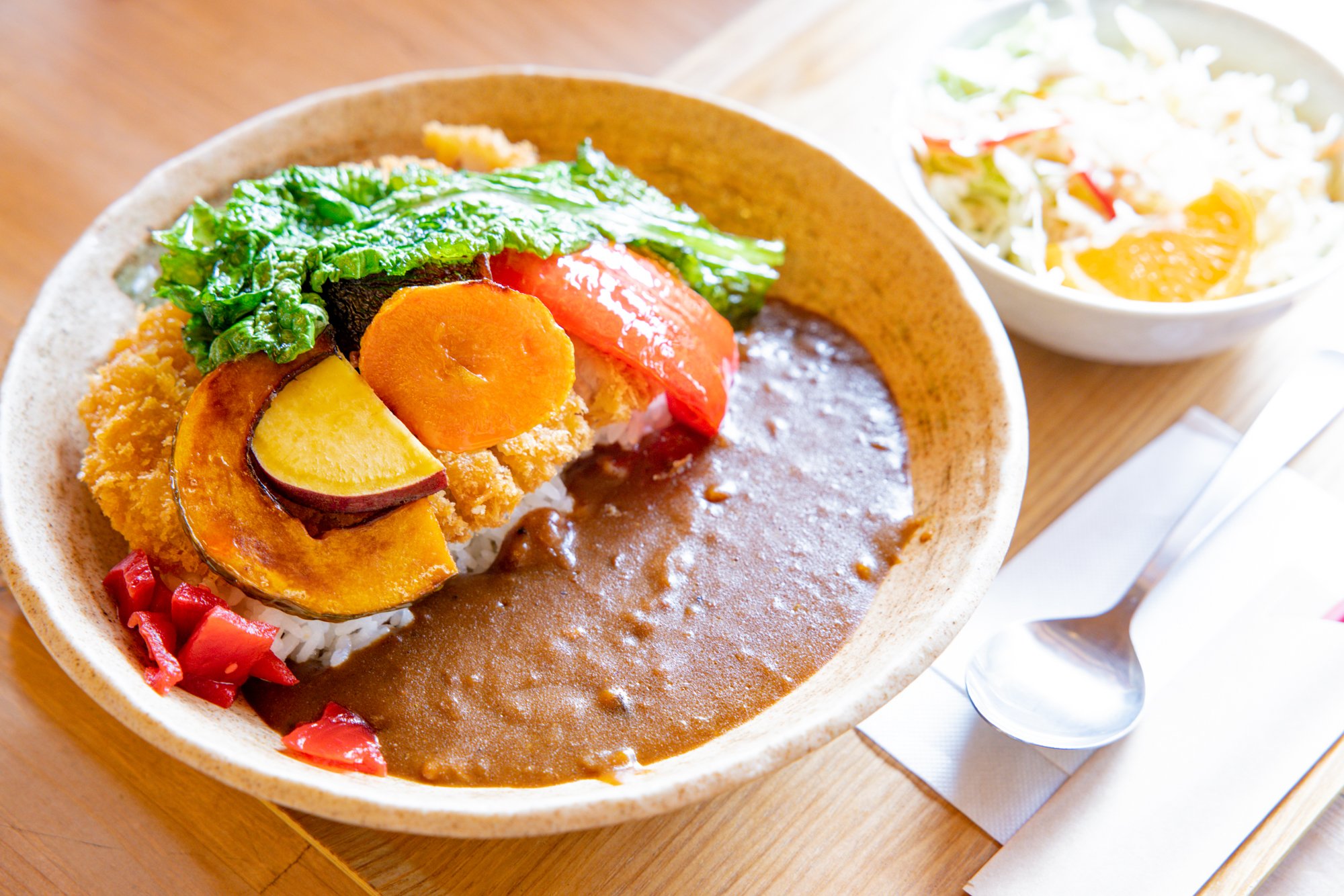 시만토 포크의 로스카츠와 지원 제철 야채의 튀김을 토핑한 「포크카츠 카레」나, 닭가라, 소다 가츠오의 분말, 가다랭이, 현지 야채 등에서 취한 국물에, 시만토쵸산의 천연 소금 & 유자 분말을 맞춘 스프가 향기 좋고 깨끗한 「시만토 유자 소금 라면(동계 한정)」등을 만끽.