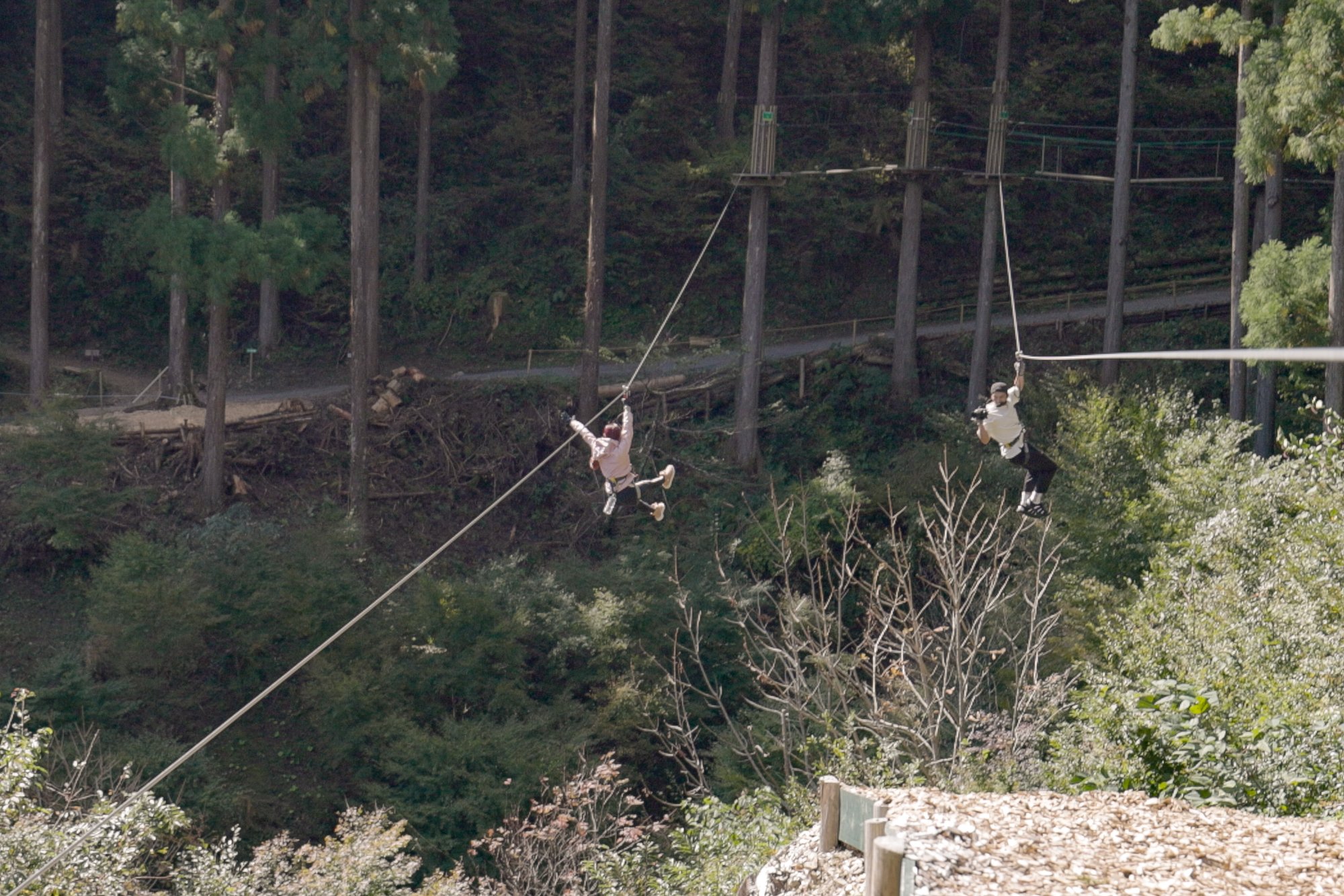 다음으로 두 명이 향한 것은 5 사이트로 구성된 전체 길이 1.2km의 어드벤처 코스.이전 코스보다 높고 긴 거리에서 와이어 로프가 설치되어 여러 경로가 설정되어 어트랙션의 요소가 강해지고 있습니다.