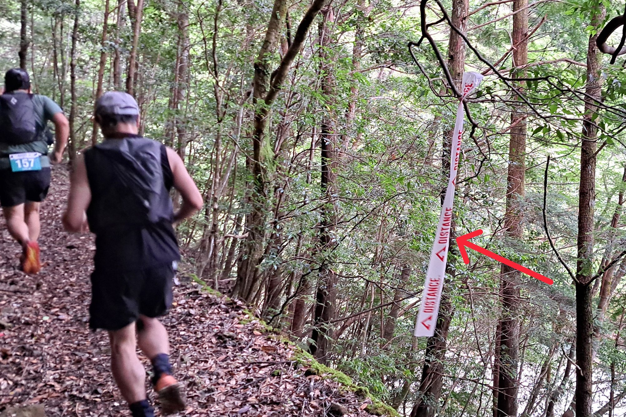 코스 아웃에 의한 실격을 막기 위해서는 사사키 씨를 비롯한 운영의 분들이 설치해 주고 있는 이 표지를 항상 의식하면서 달리는 것이 중요해집니다.