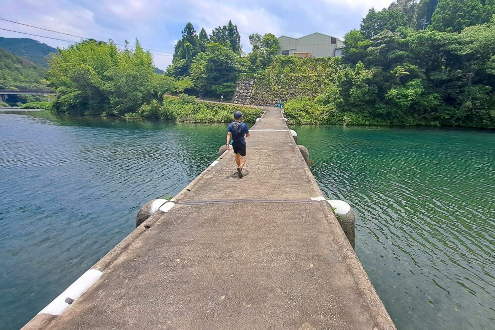 이번 코스에는, 시미즈가세 침시타바시와 이치토가와라 침시바시의 2개소의 침하교를 건너지만, 2개소째의 이치토바 침하교는, 무려 그대로 시만토가와에 다이브할 수 있습니다.