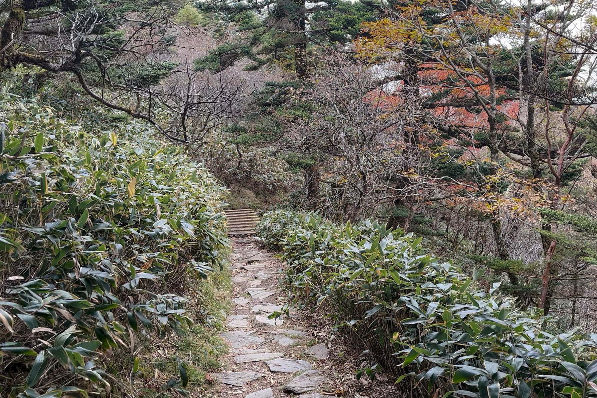 「쿠마자사」가 깔린 마치 융단처럼 펼쳐지는 경치를 바라보면서 하산합니다.