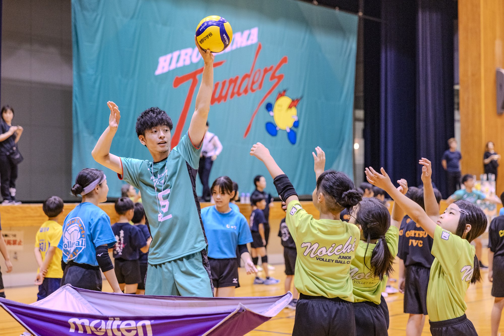 2025년 6월 21일, 고치 현립 현민 체육관의 주경기장에, 현내의 초중학생 94명이 집결.프로 배구 팀 「히로시마 썬더즈」의 선수 4명을 맞이한 배구 교실이 개최되었습니다.