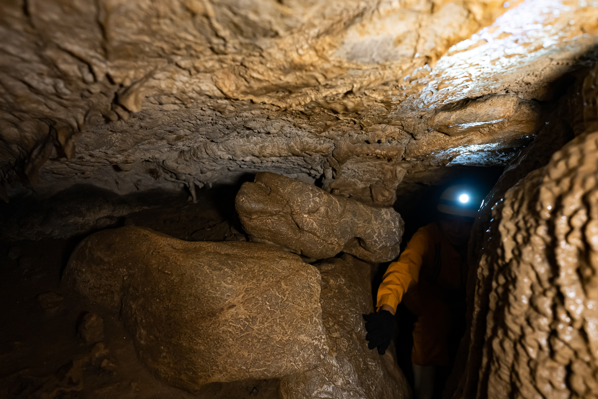 복잡하게 형성된 종유동 속을 돌진해 나가기 위해 다양한 자세를 취하면서 길 없는 길을 가는 진심의 어드벤처